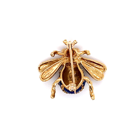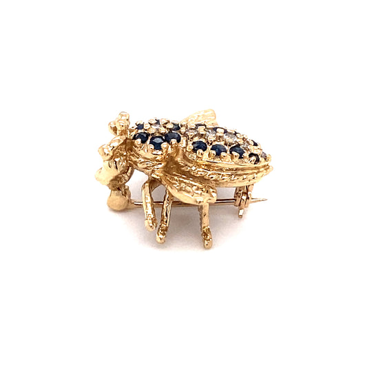Circa 1980 Sapphire and Diamond Bee Pin in 14 Karat Gold