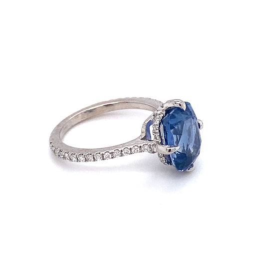 3.50ct Oval No-Heat Ceylon Sapphire and 0.40ct Diamond Ring in 14K White Gold