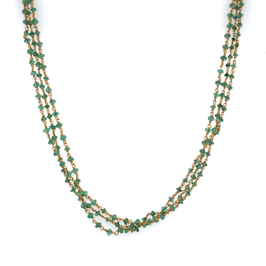 Circa 1980 Three Strand Emerald Bead Necklace in 18K Gold