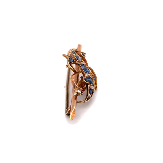 Circa 1850 Sapphire and Diamond Brooch in 15 Carat Gold