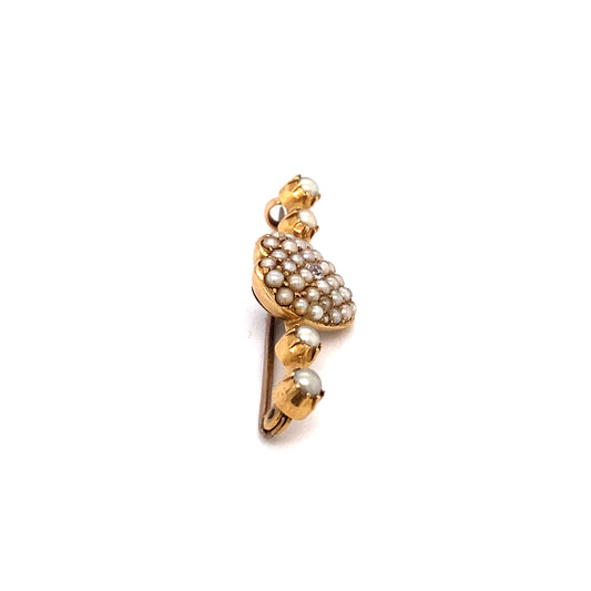 Circa 1850 Pearl and Diamond Heart Bar Mourning Brooch with Hair in 18K Gold