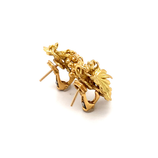 1950s Retro French Clip Grape Earrings in 18K Gold