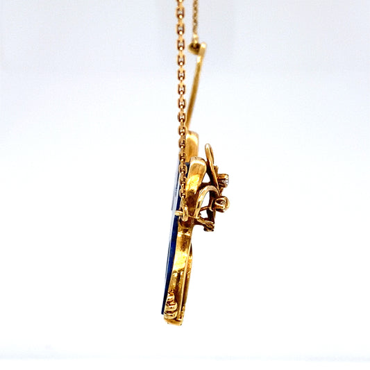 1950s French Lapis Lazuli and Diamond Pussycat Pendant in 18K Gold