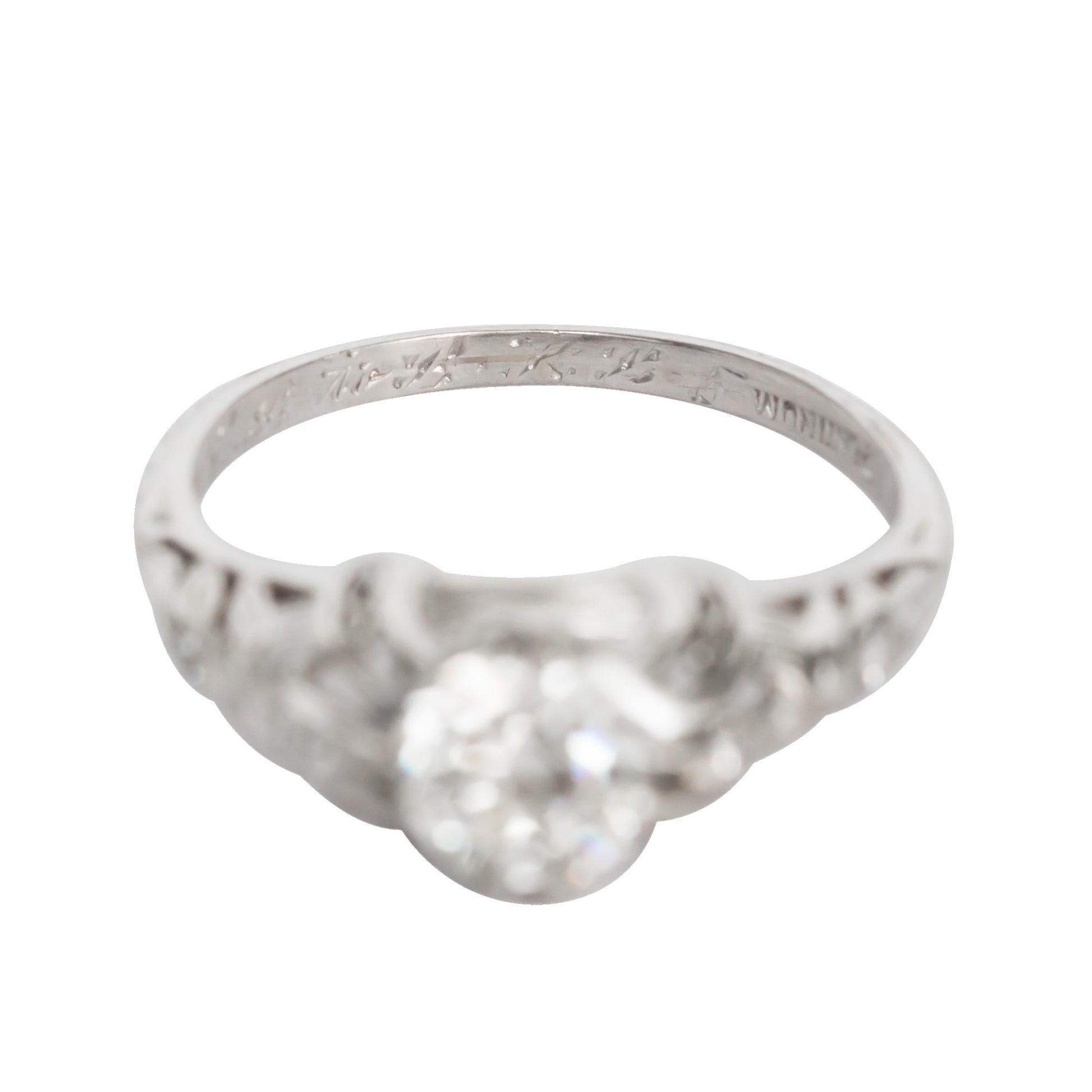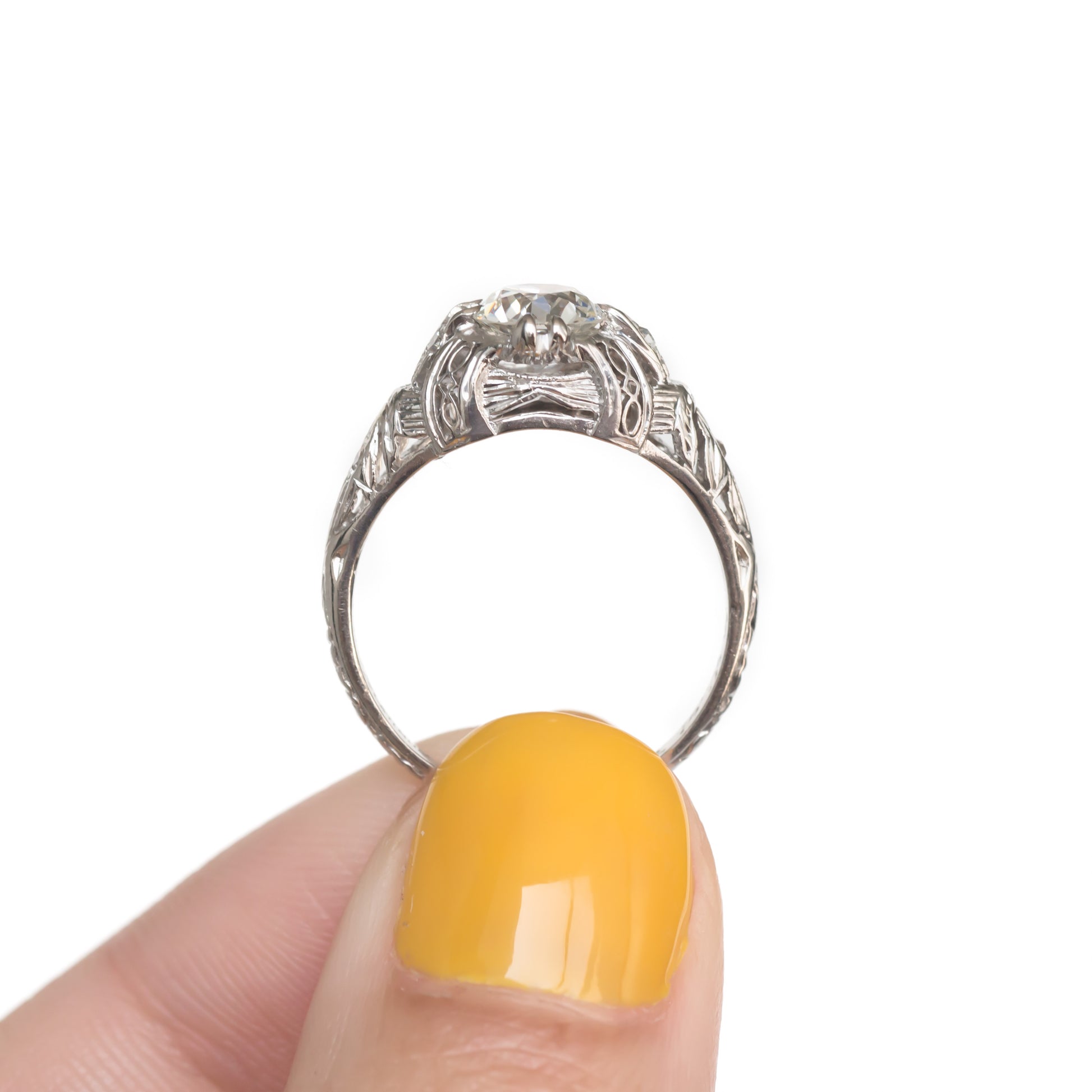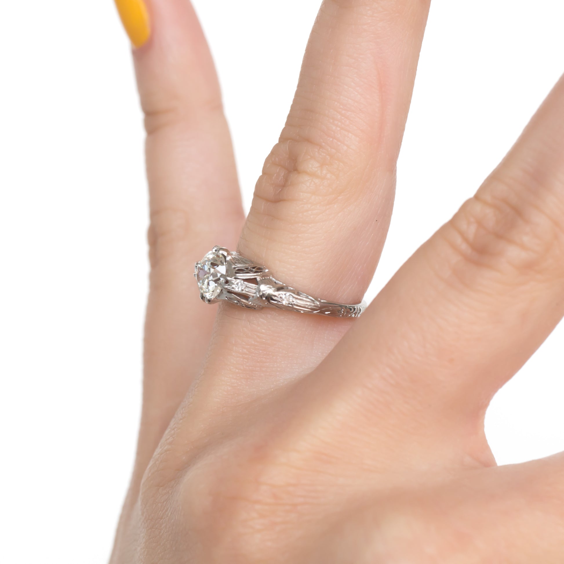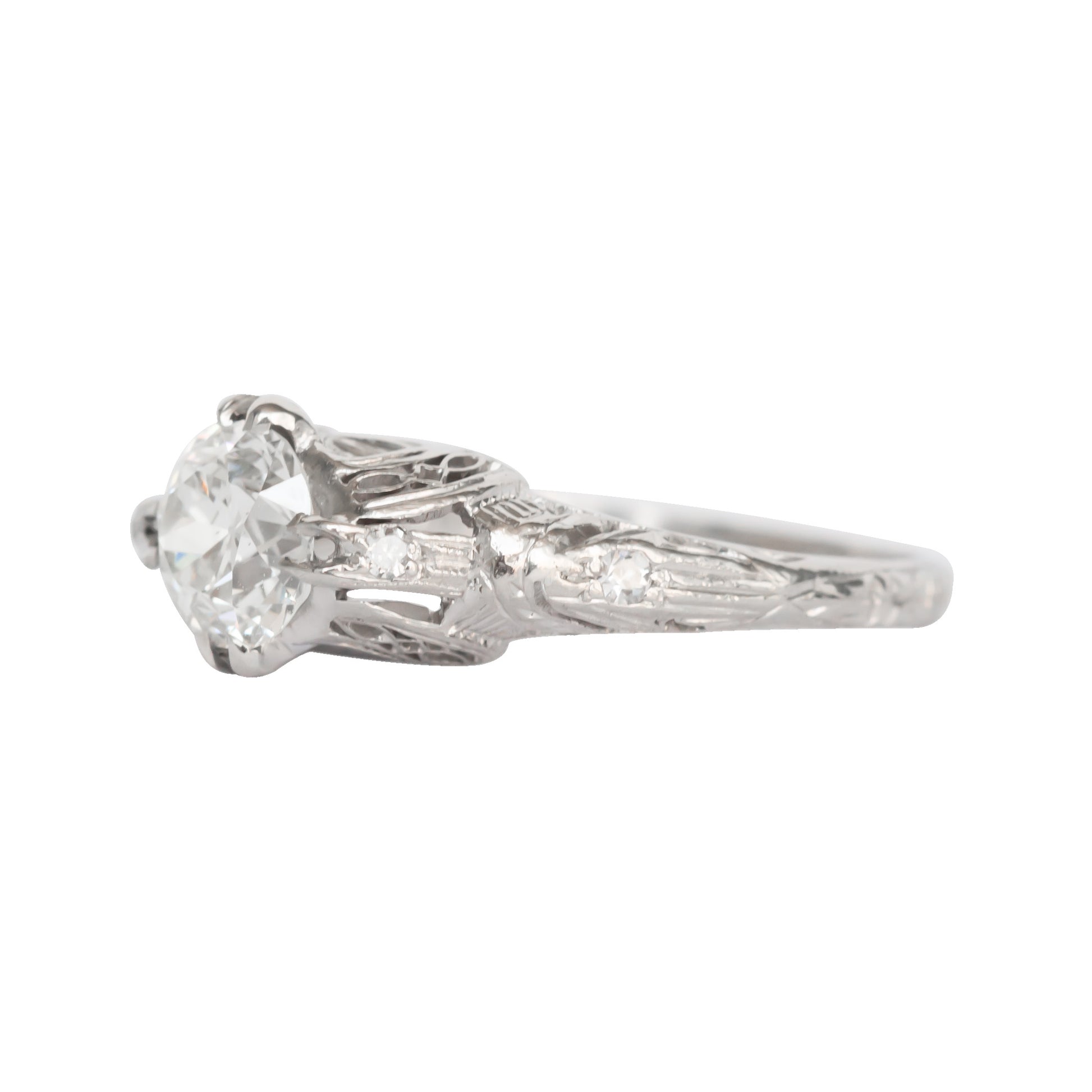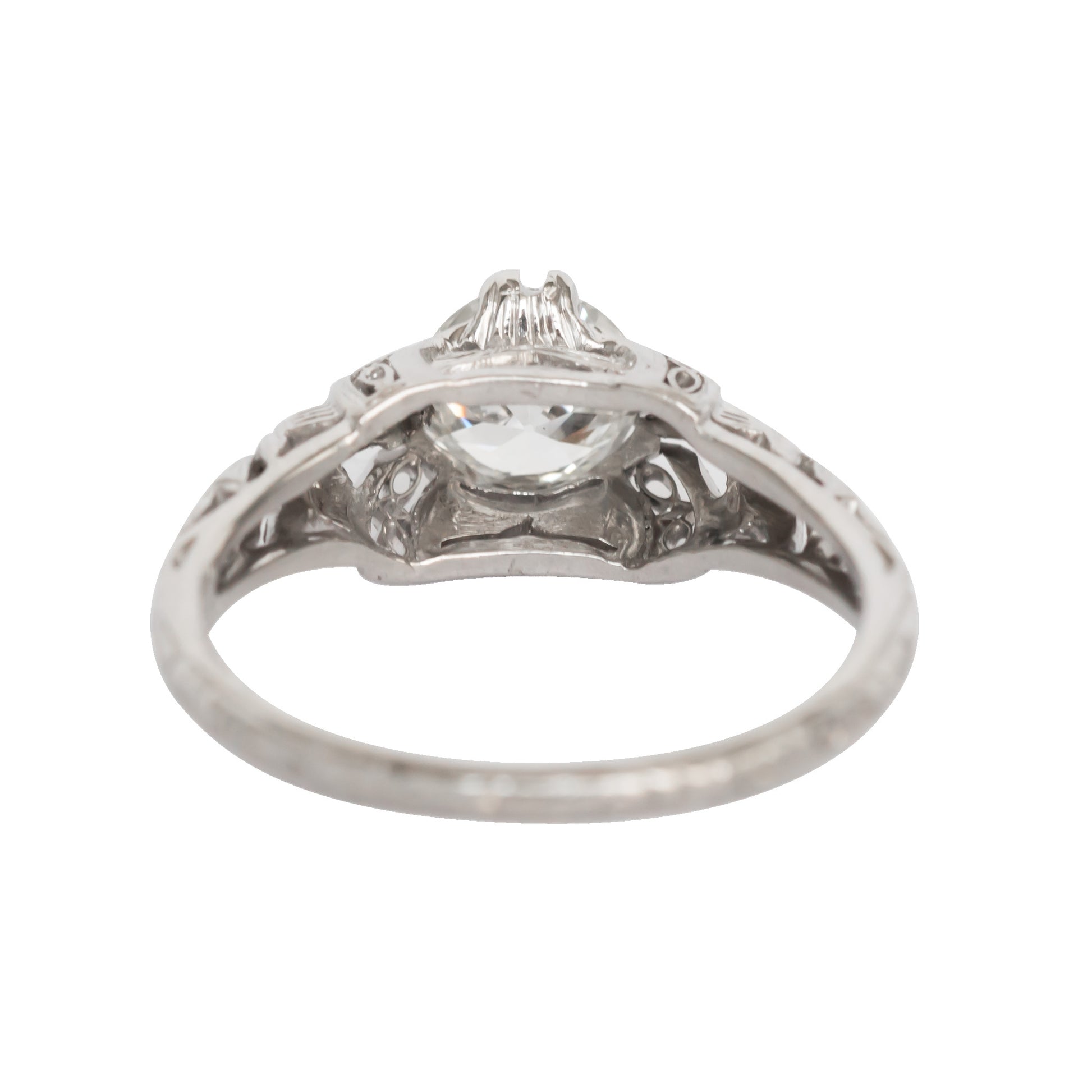 Here we have an 1910 Edwardian Platinum Engagement Ring! It is GIA certified! The center stone i .78ct Circular Brilliant and .08cttw Antique Single Cut Diamonds! The shoulder and shank of this ring is designed so well! There are so many little details to this ring! The filigree looks amazing! This ring was definitely a big hit in the 1910s!