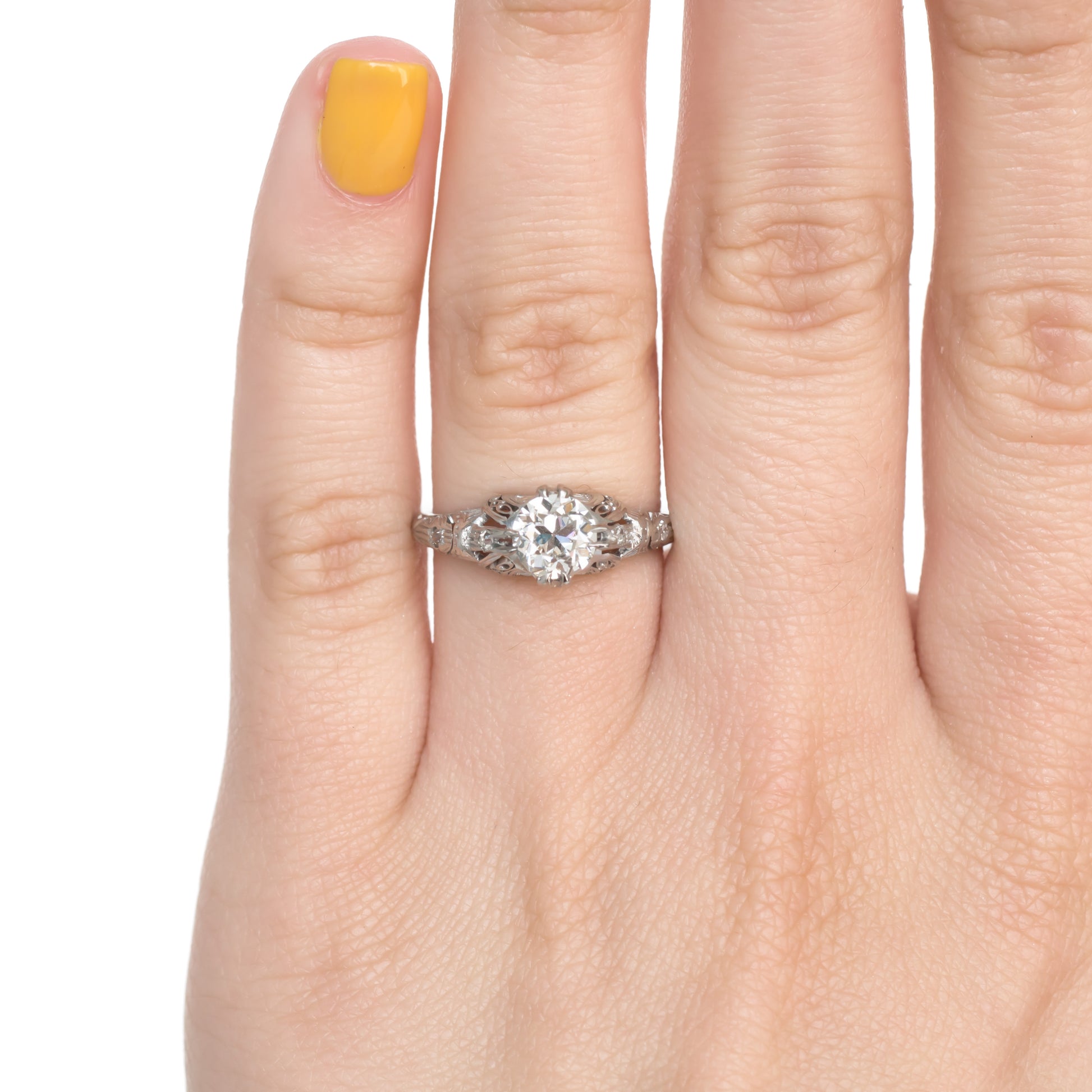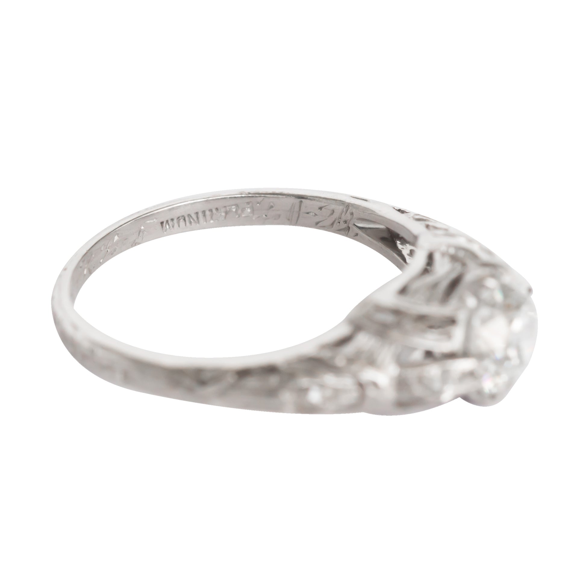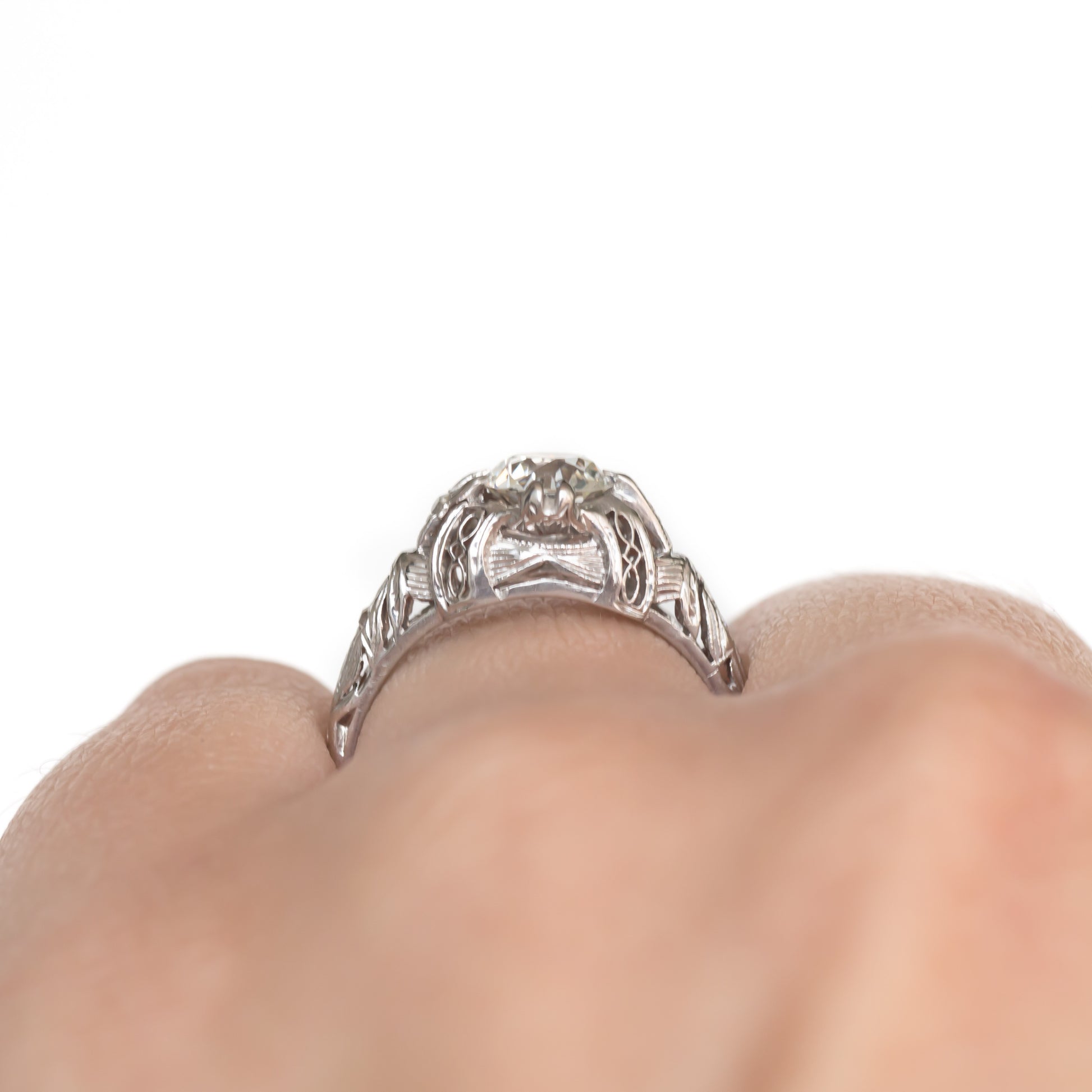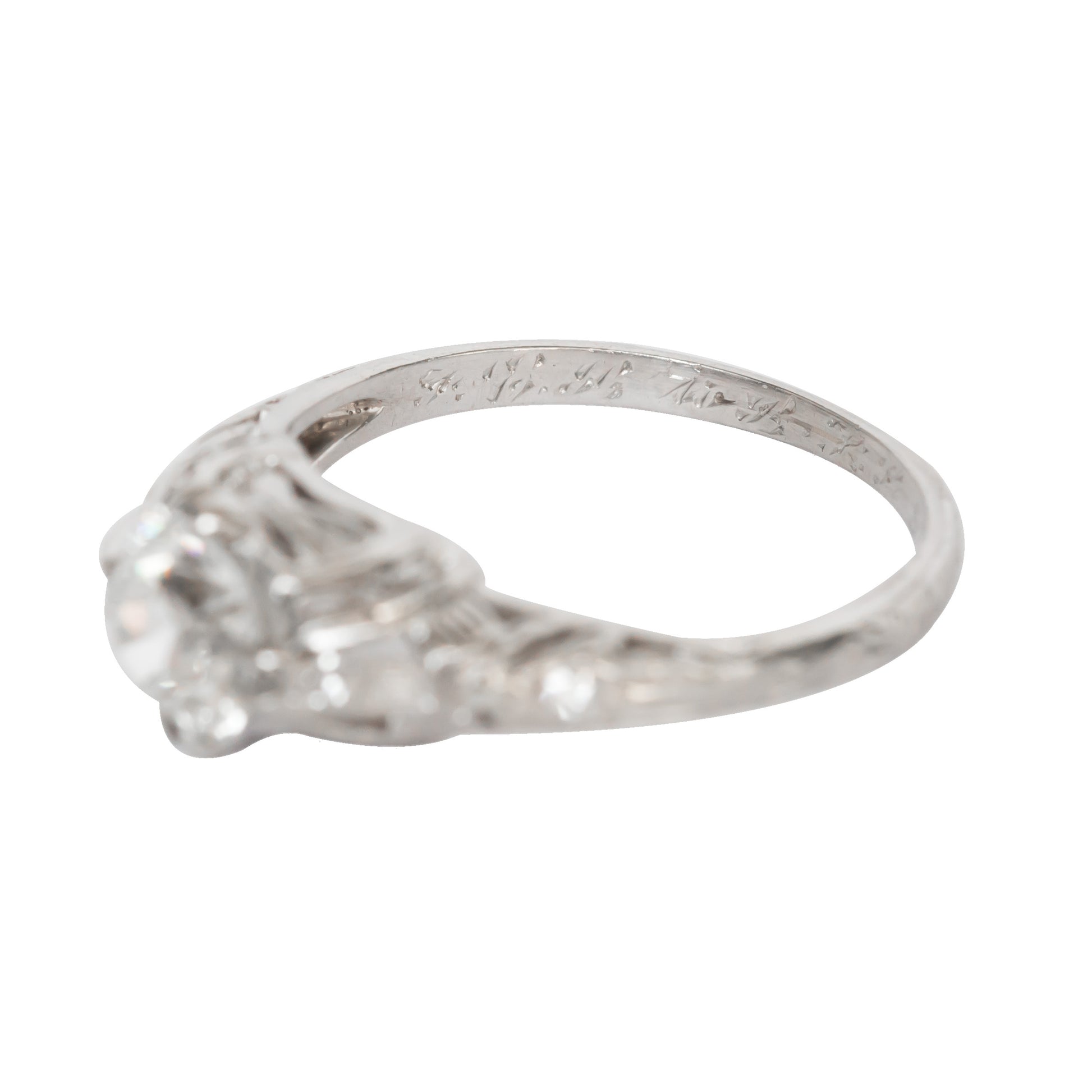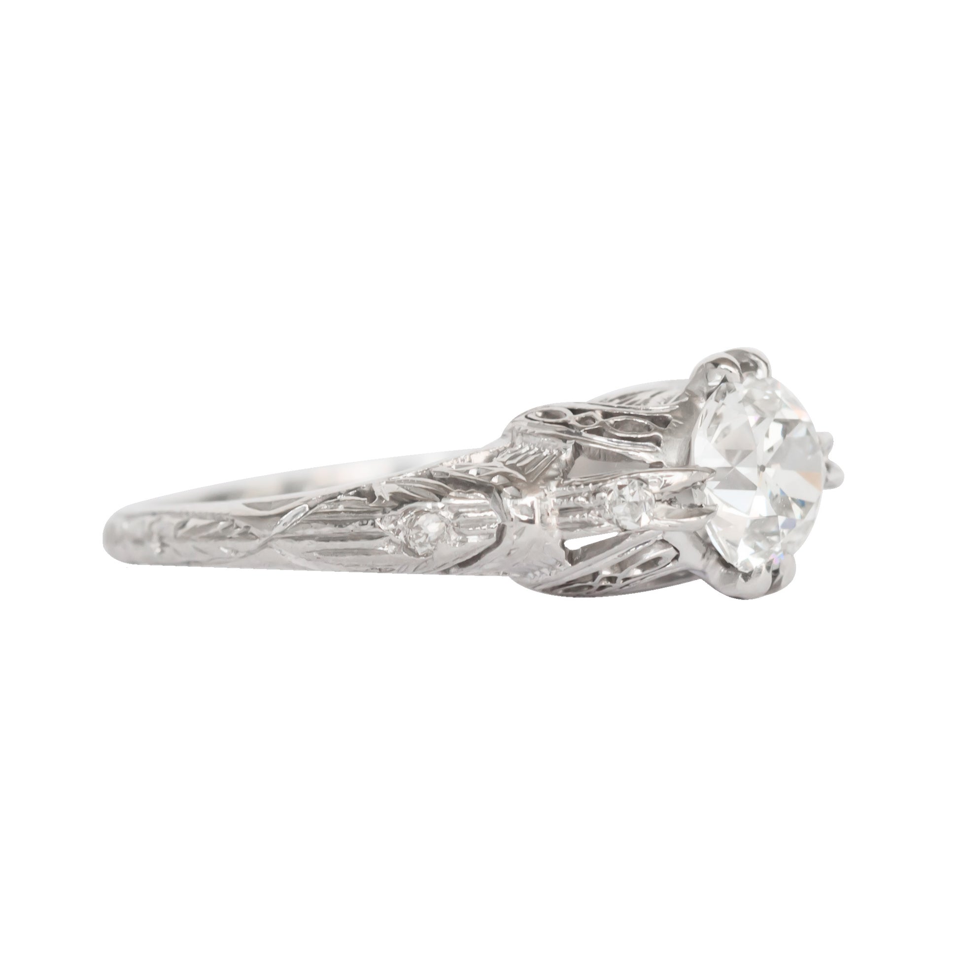 Circa 1910 Edwardian Platinum GIA certified .78ct Circular Brilliant and .08cttw Antique Single Cut Diamonds Engagement Ring-VEG#1122A