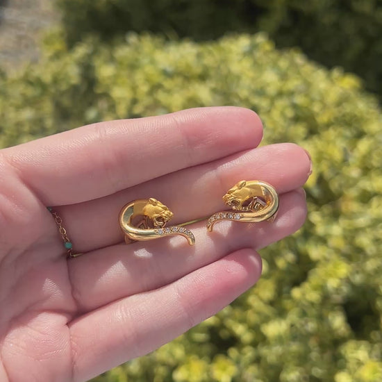 Carrera Y Carrera 18K Yellow Gold Panther Diamond Earrings - VHK#933a