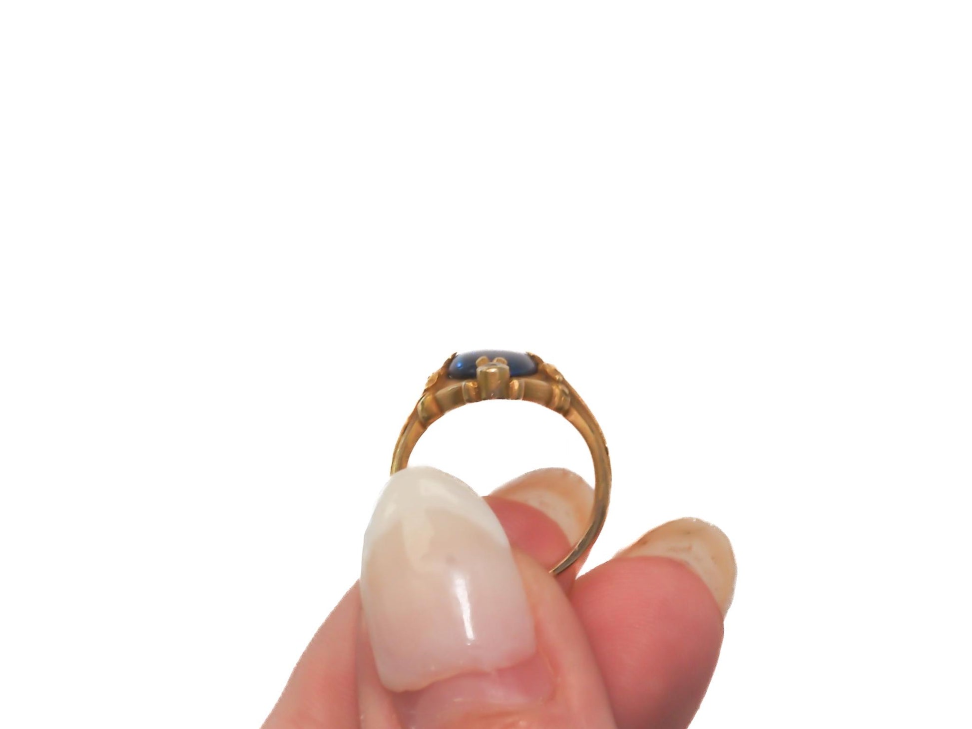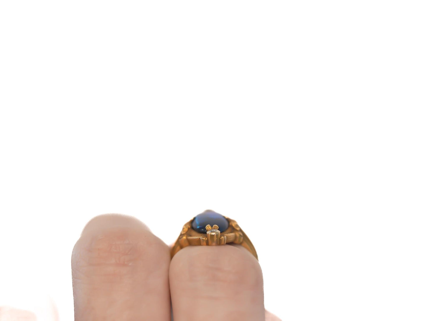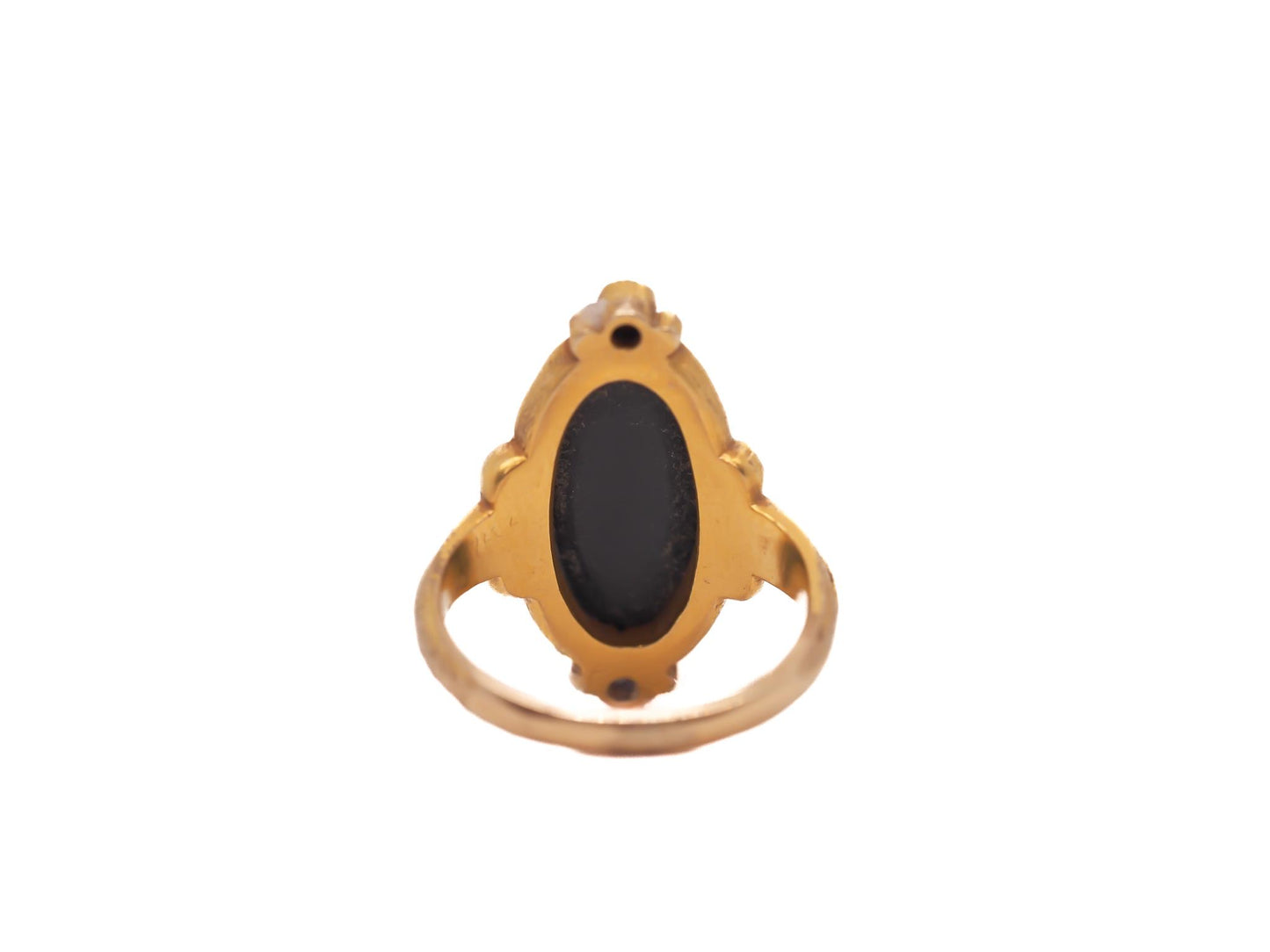 Circa 1900s Art Nouveau 18K Yellow Gold Black Opal and Diamond Ring - VEG#2029a
