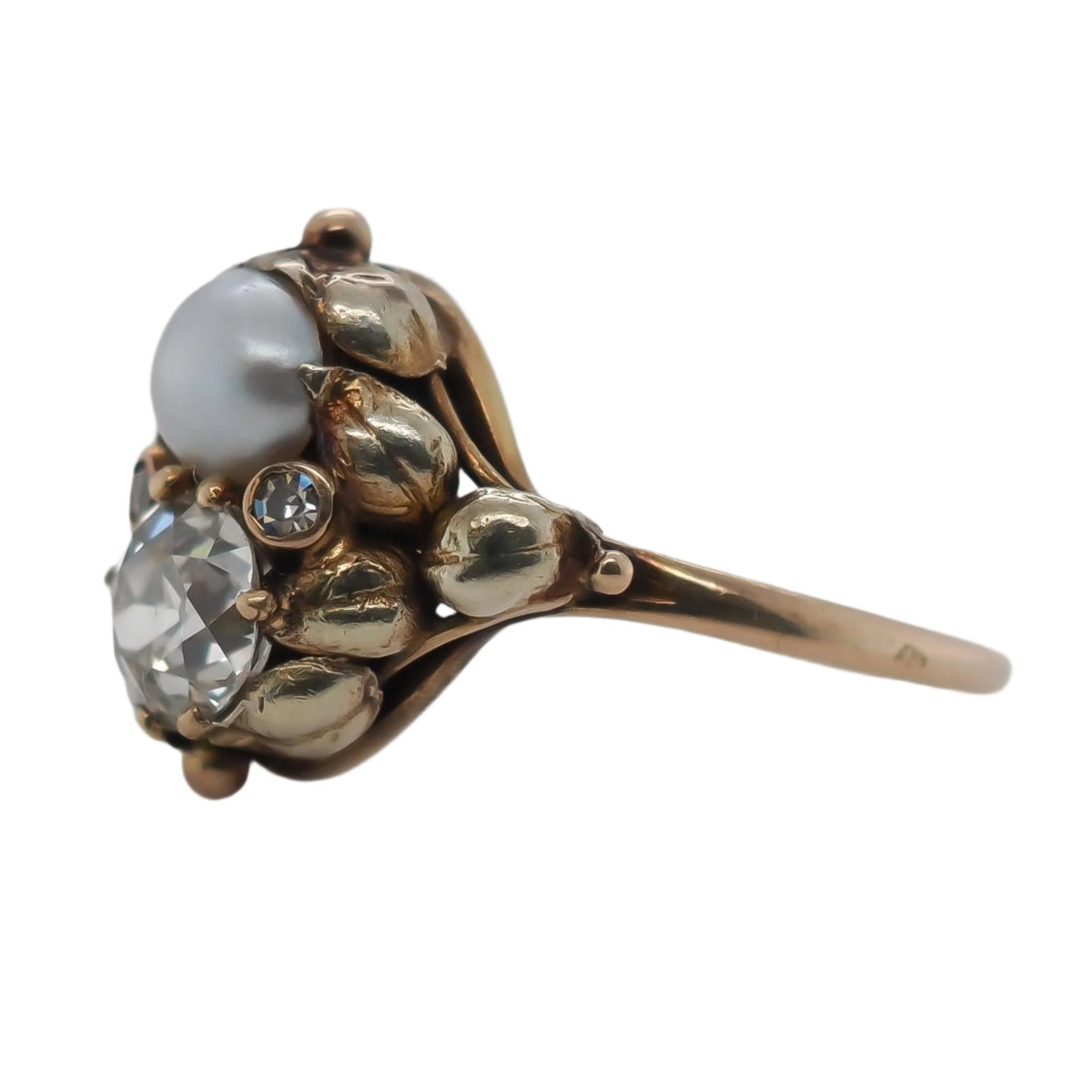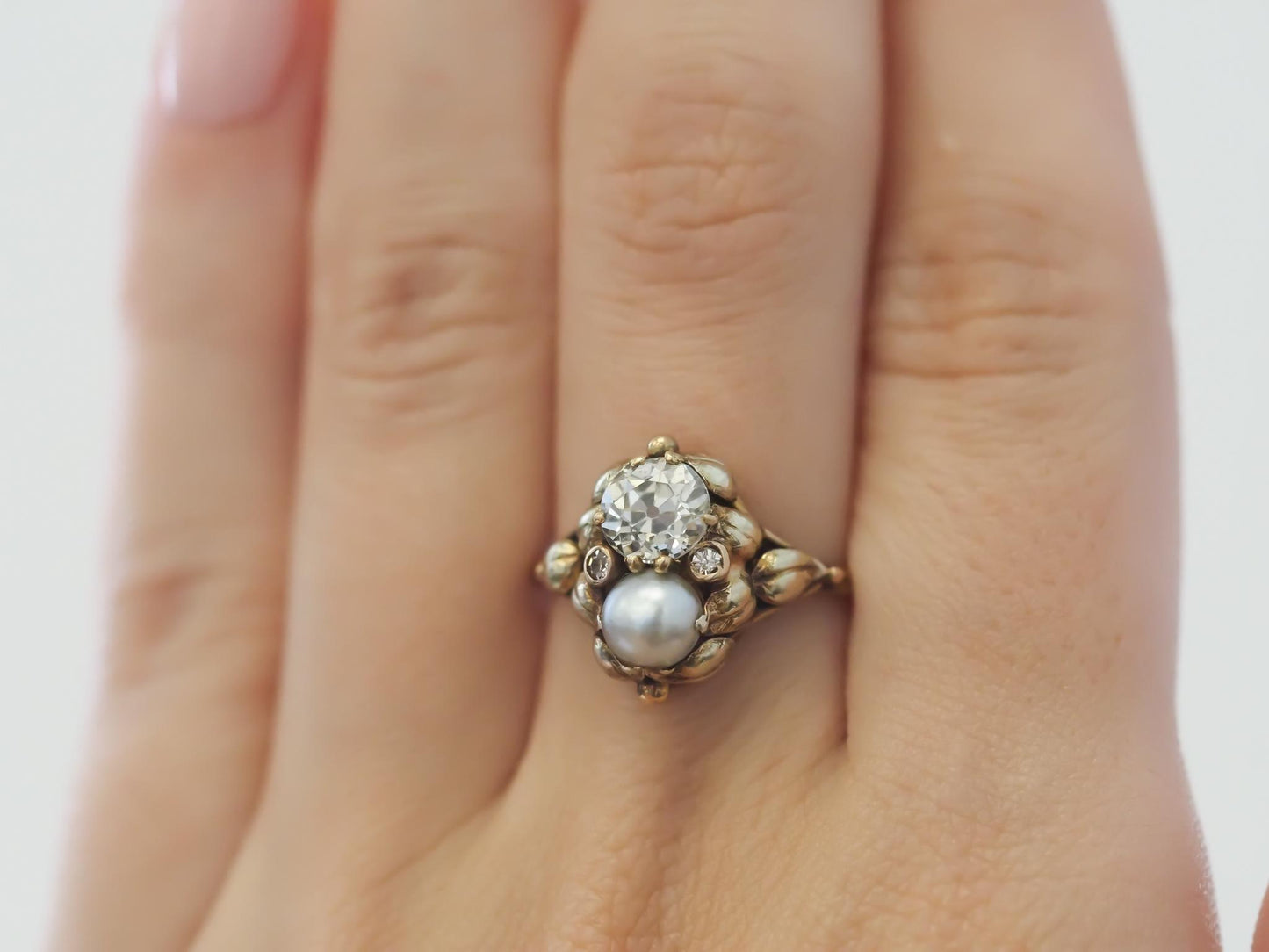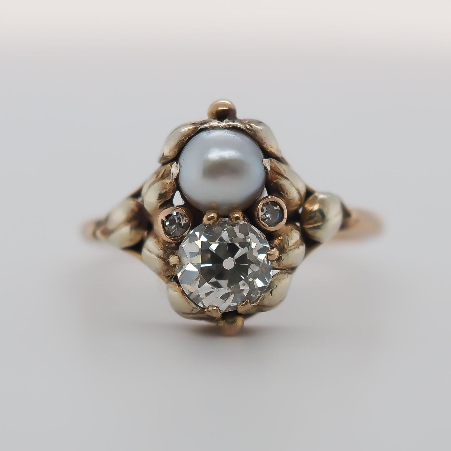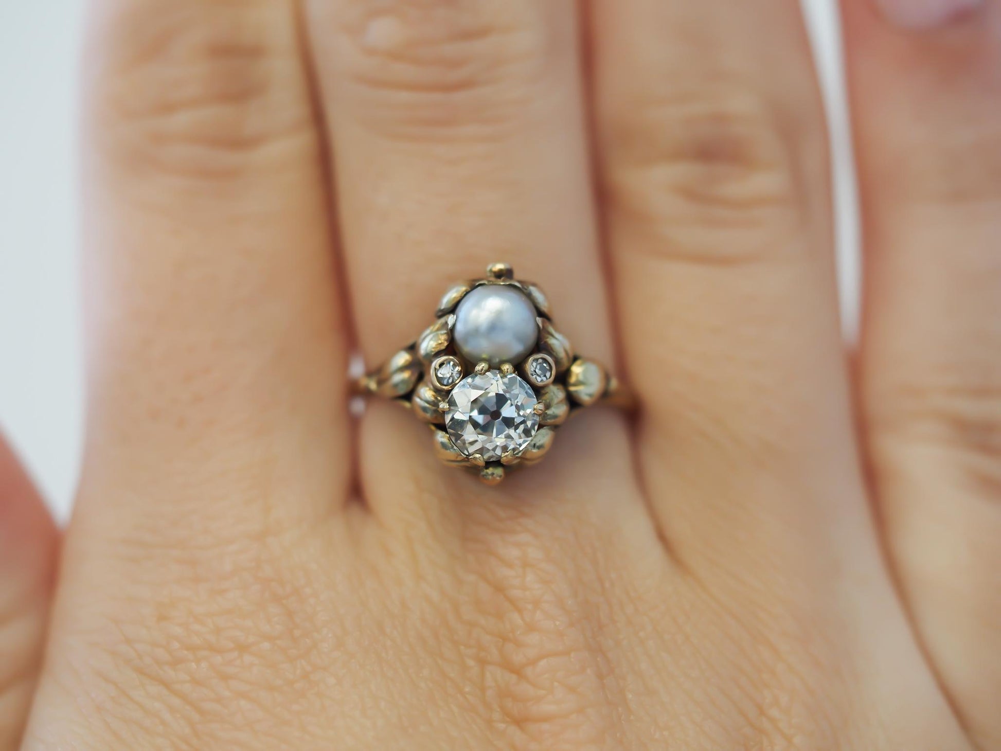 Circa 1900s Arts & Crafts Era Old European Diamond and Pearl Engagement Ring - VEG#2333