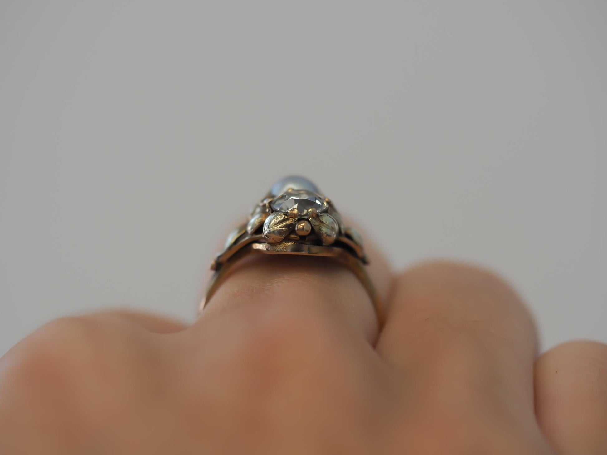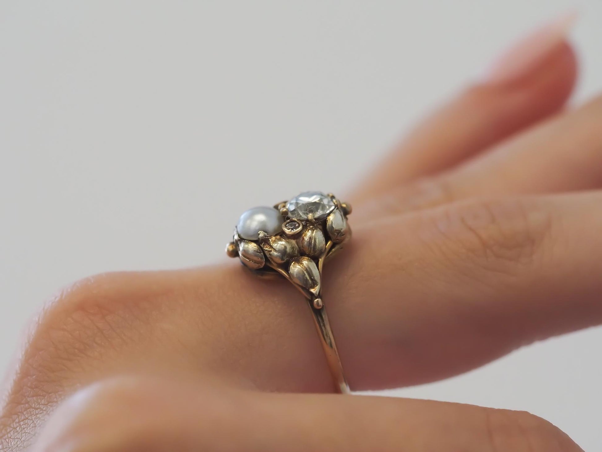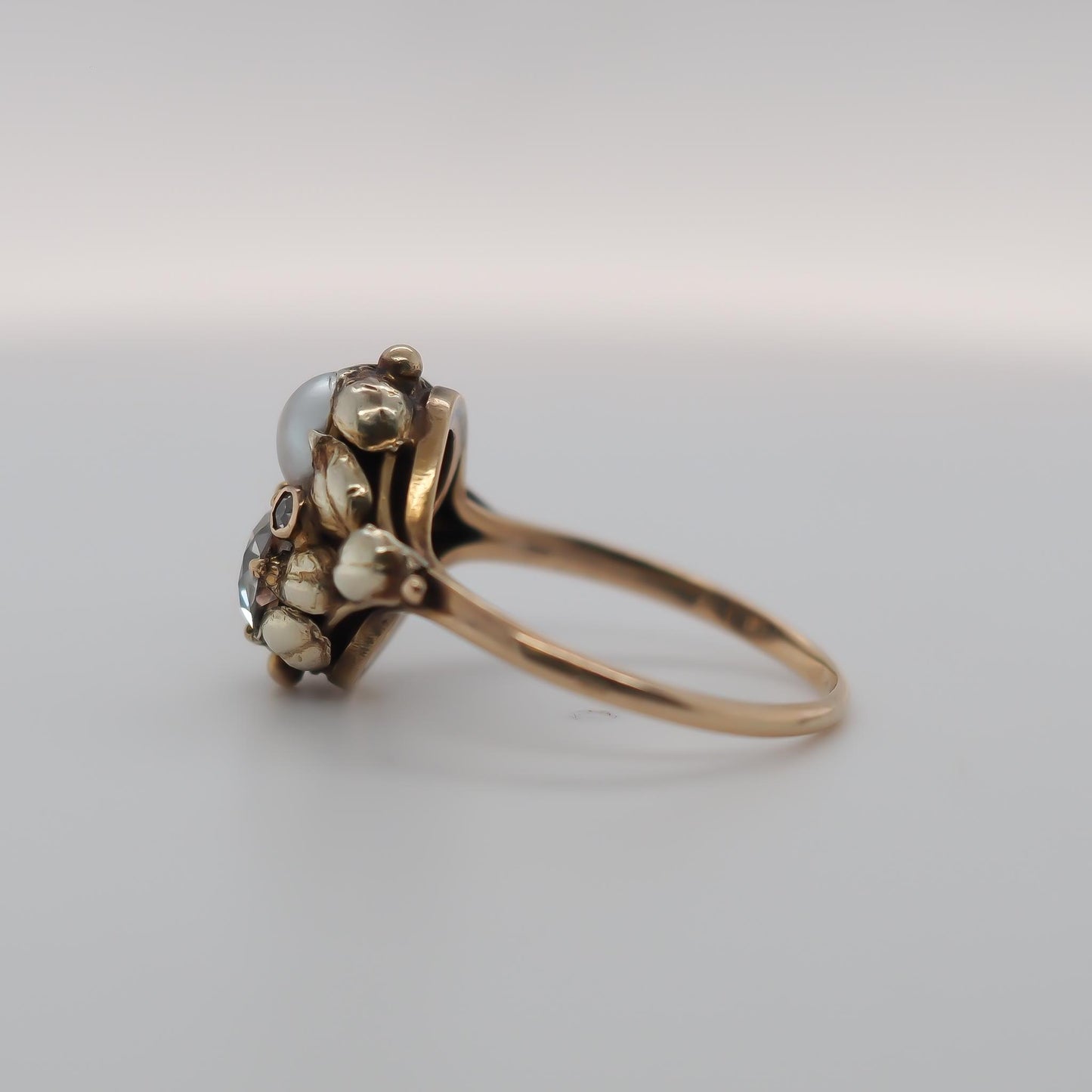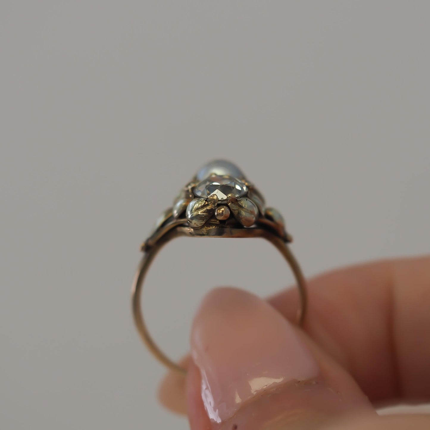 Circa 1900s Arts & Crafts Era Old European Diamond and Pearl Engagement Ring - VEG#2333