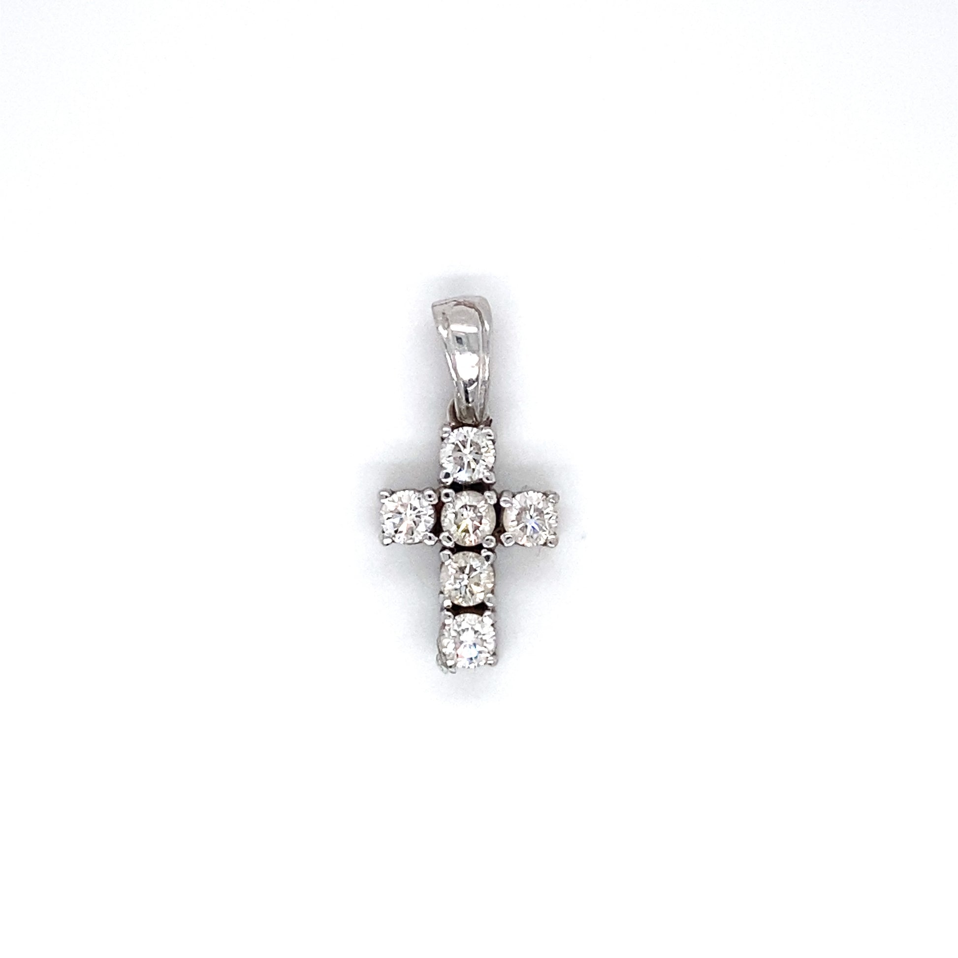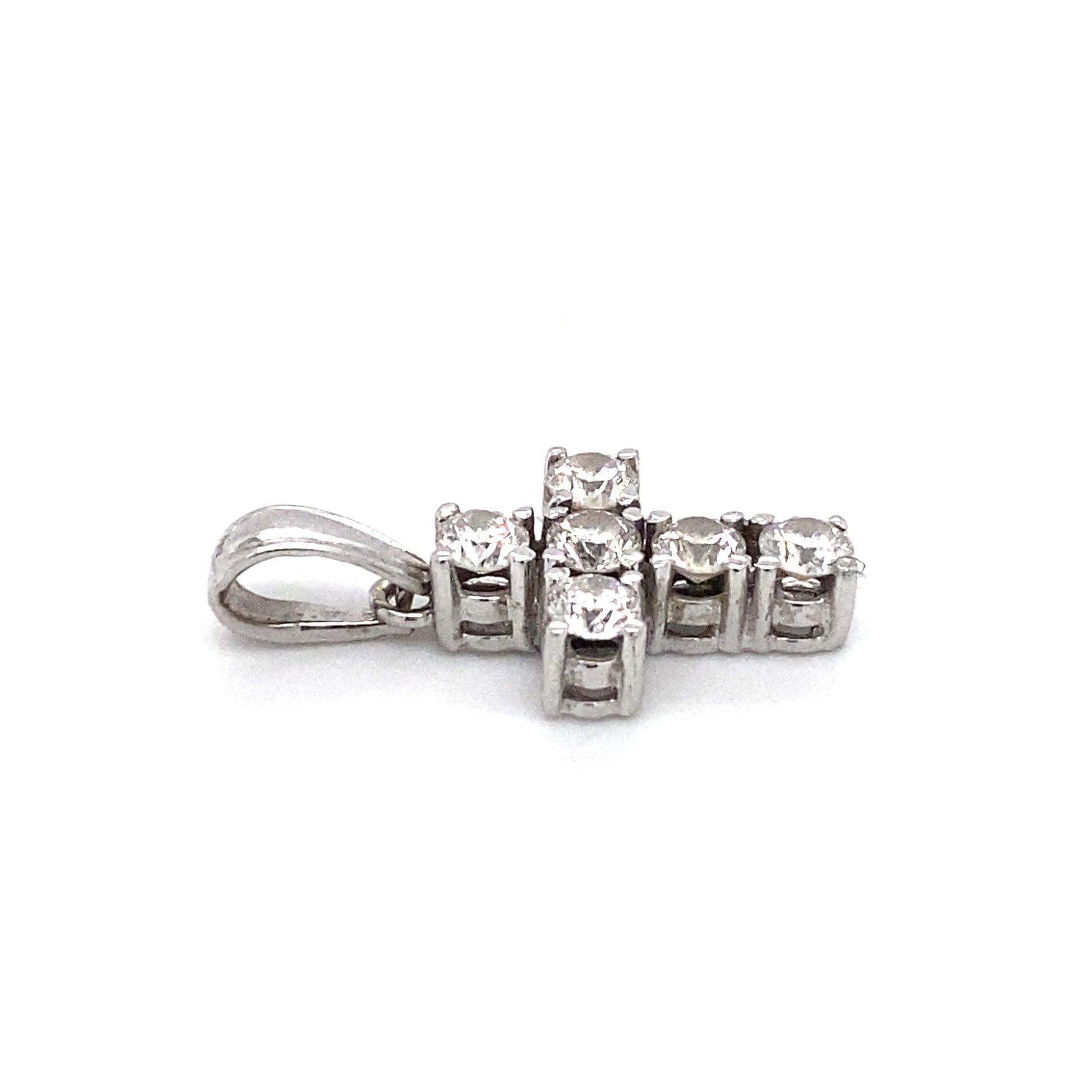 Circa 1990s 1.0 Carat Diamond Cross Pendant in 14K White Gold