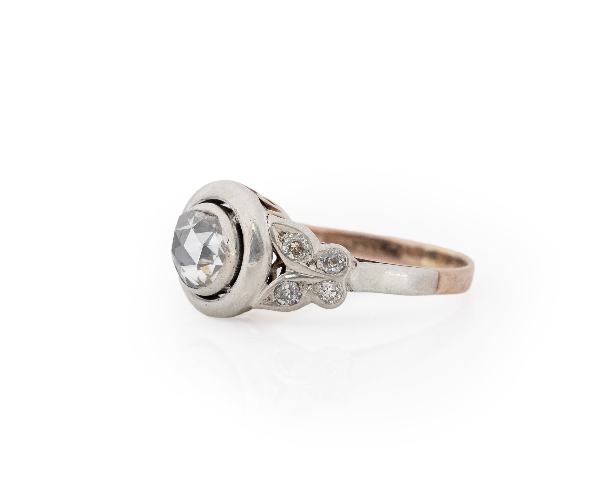 Circa 1900s 14K Rose Gold and Platinum 1.00ct Rose Cut Diamond Engagement Ring - VEG#2278