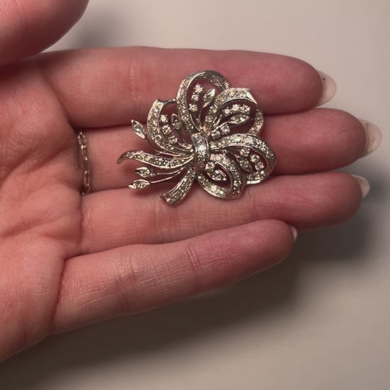 Estate 14K White Gold Flower Brooch with Diamonds