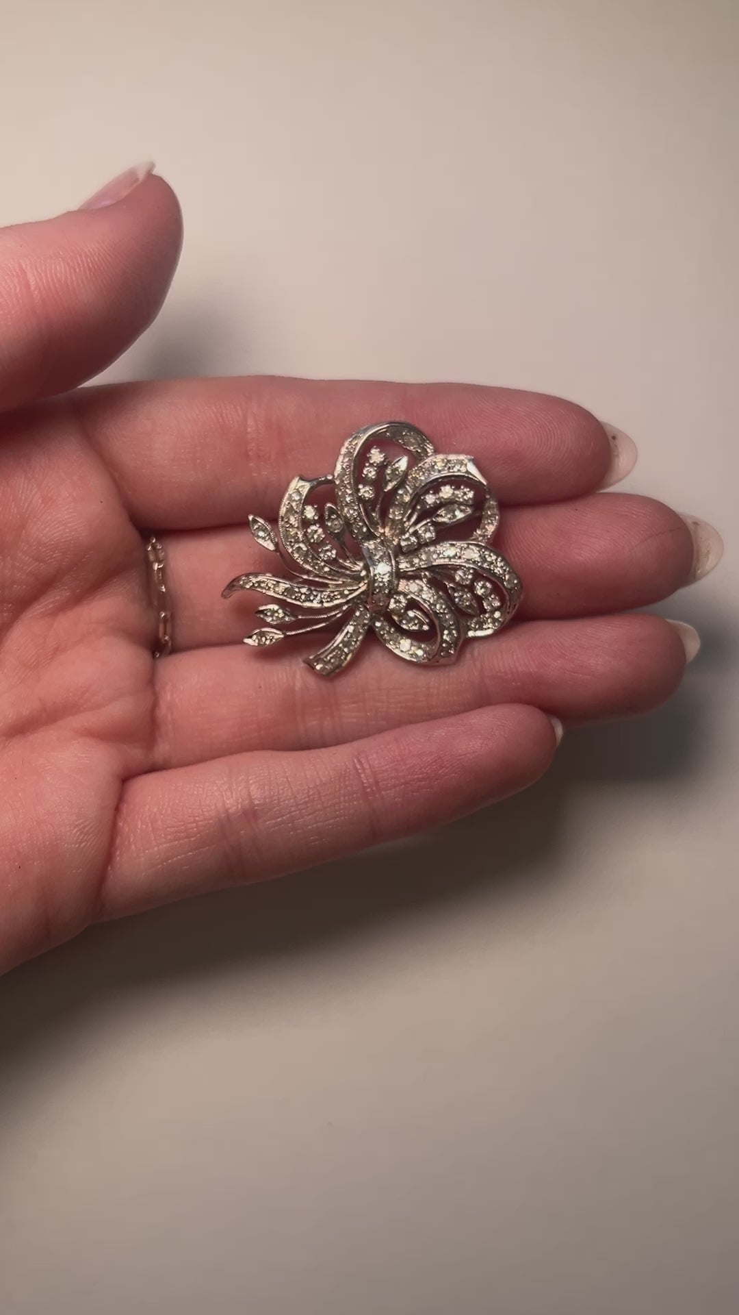Estate 14K White Gold Flower Brooch with Diamonds - VHK#956