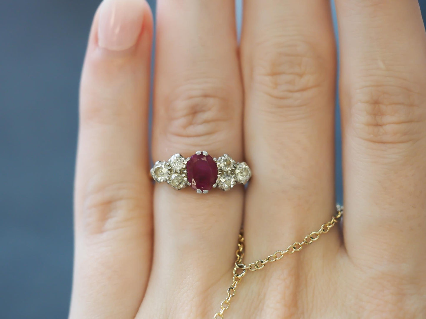 Ruby Details: .90ct, Red, Antique Oval, Natural and Unheated.