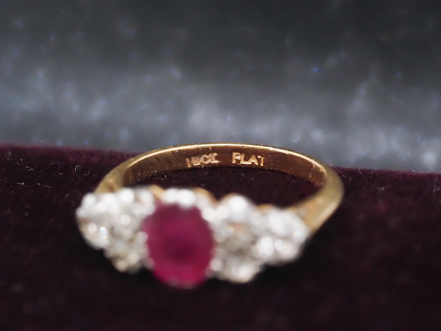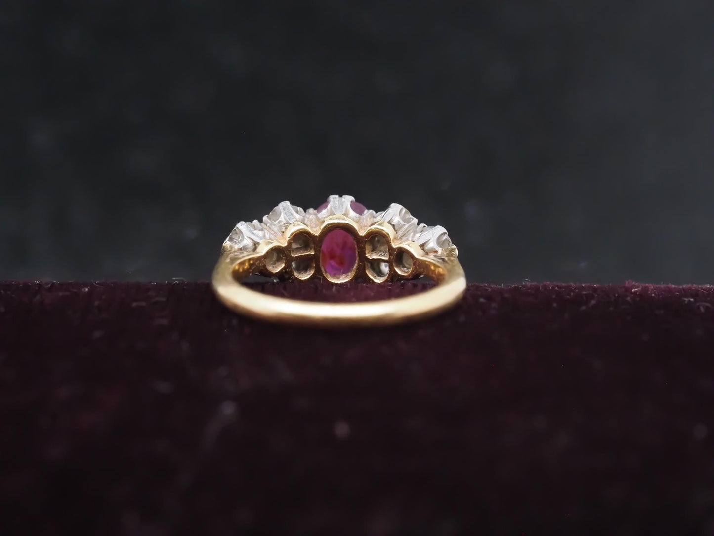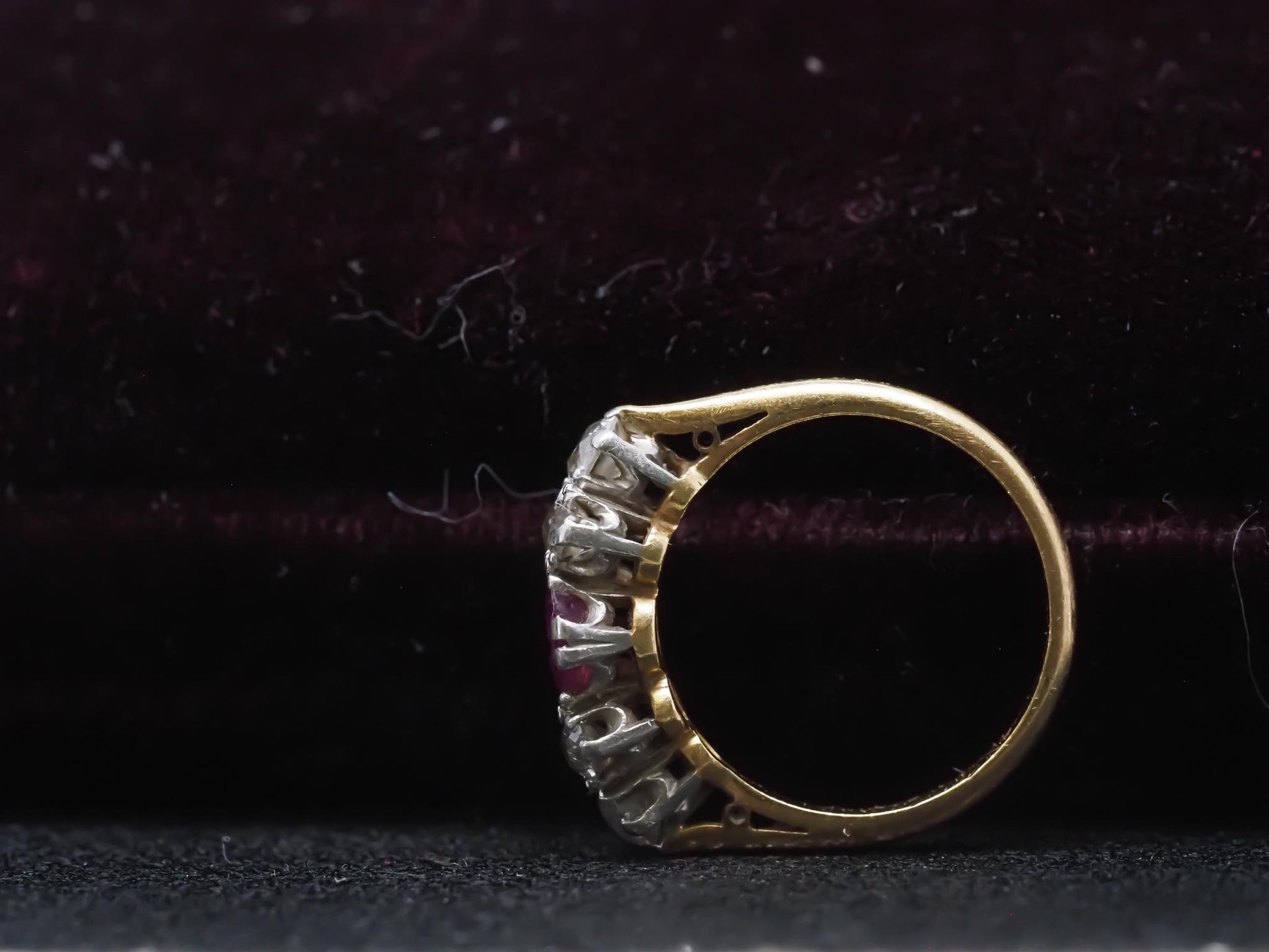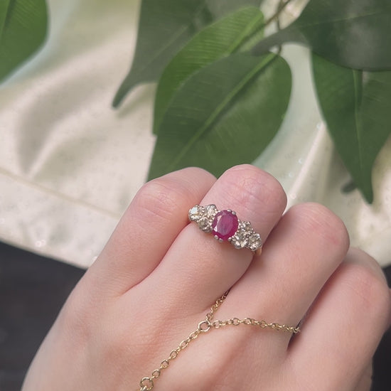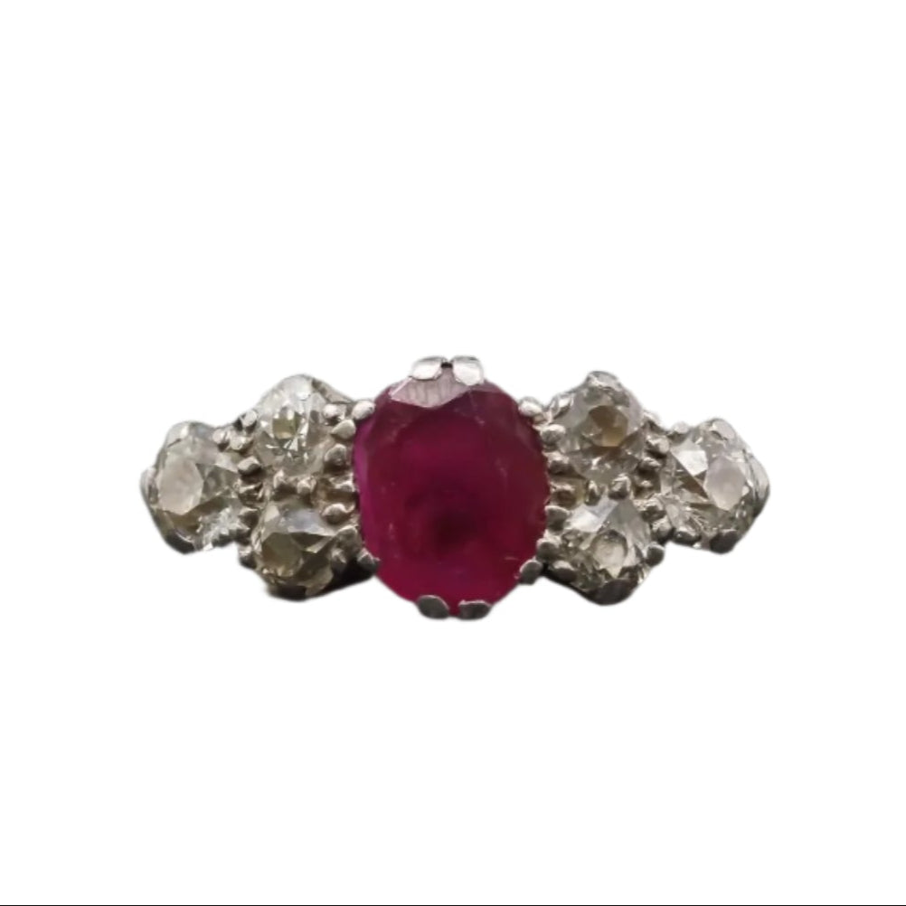 Estate 18K Gold and Platinum English Ruby and Old Mine Diamond Ring - VHK#999