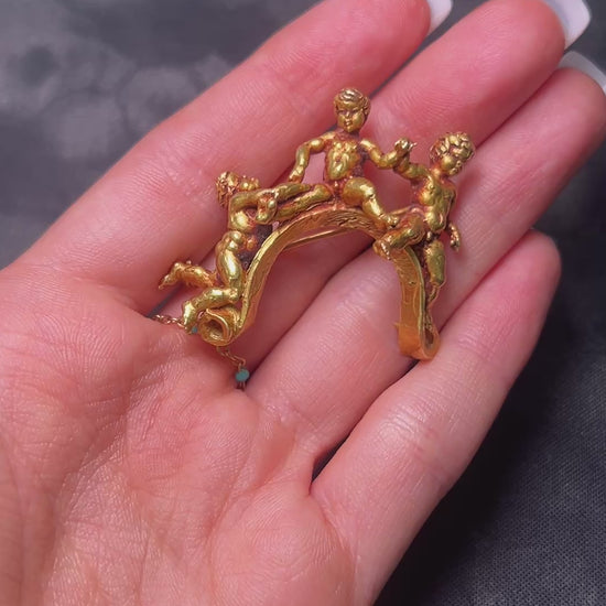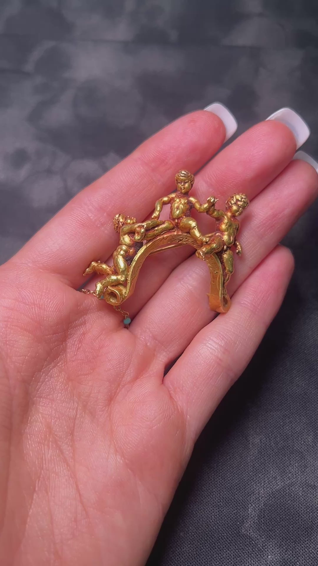 Estate 1920s 19K Yellow Gold Cherub Brooch with Signature - VHK#538b