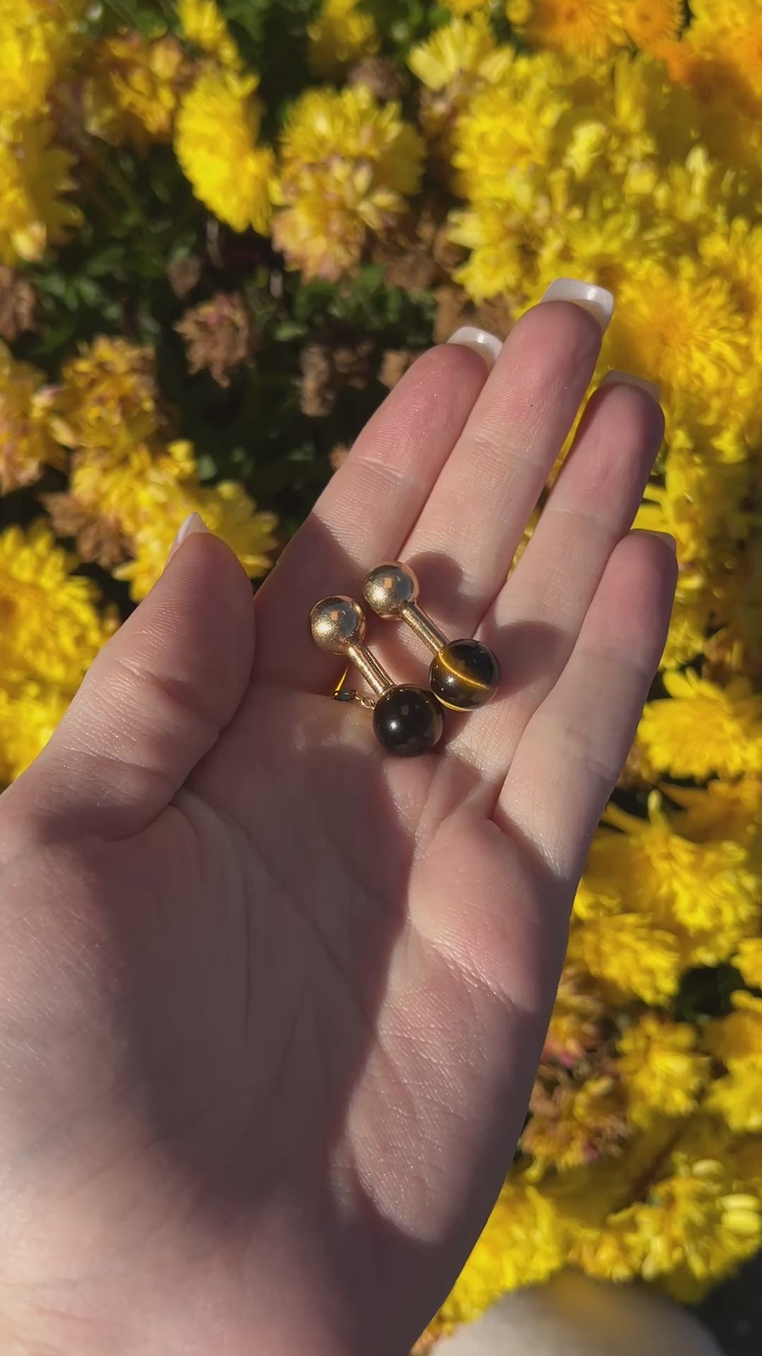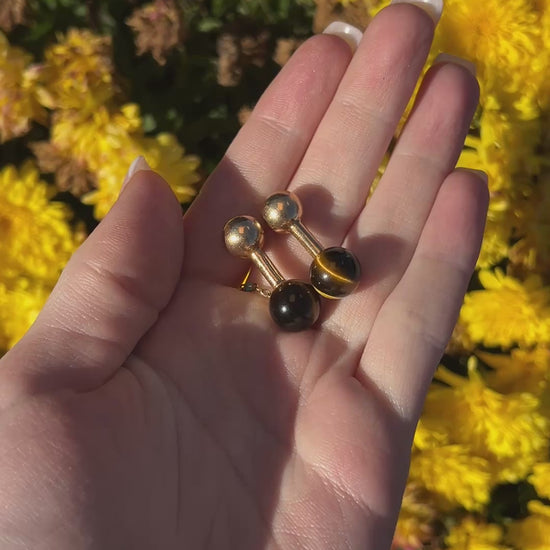 Estate 1970s Tiffany & Co. 14K Gold Tigers Eye Cufflinks - VHK#478a
