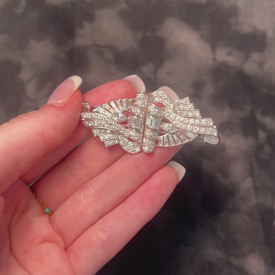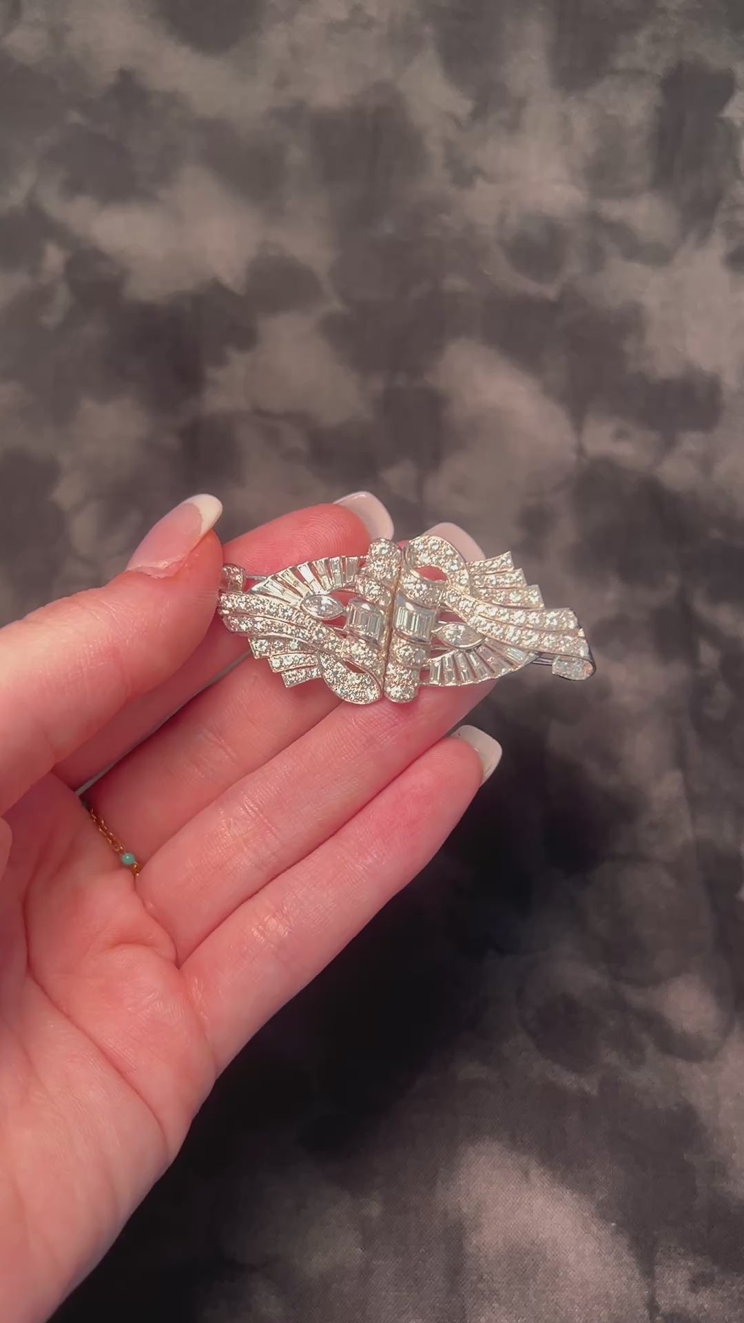Estate Art Deco Platinum Diamond Double Clip Brooch - VHK#508b