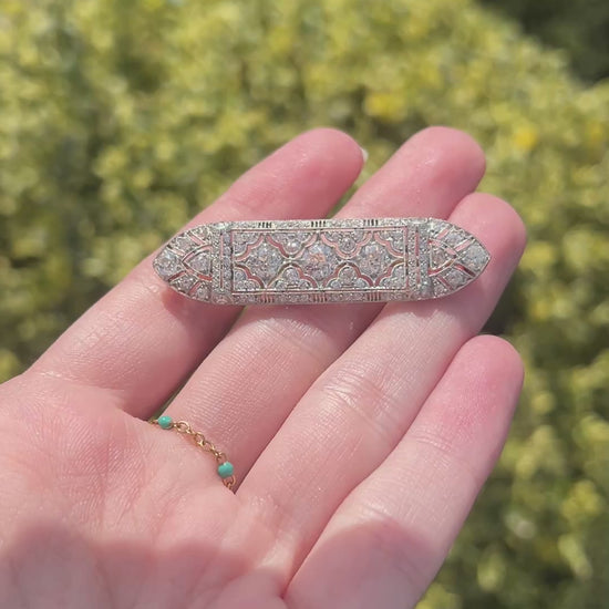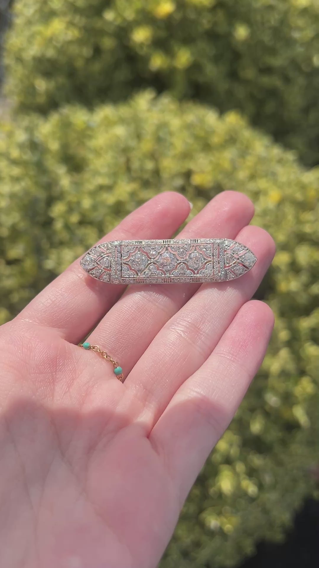Estate Art Deco Platinum Old European Diamond Intricate Brooch - VHK#229a