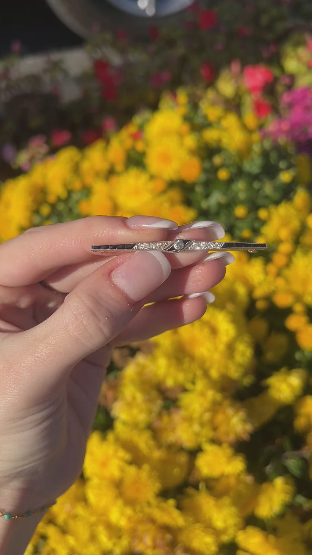 Estate Art Deco Platinum Onyx and Old Mine Diamond Brooch - VHK#540a