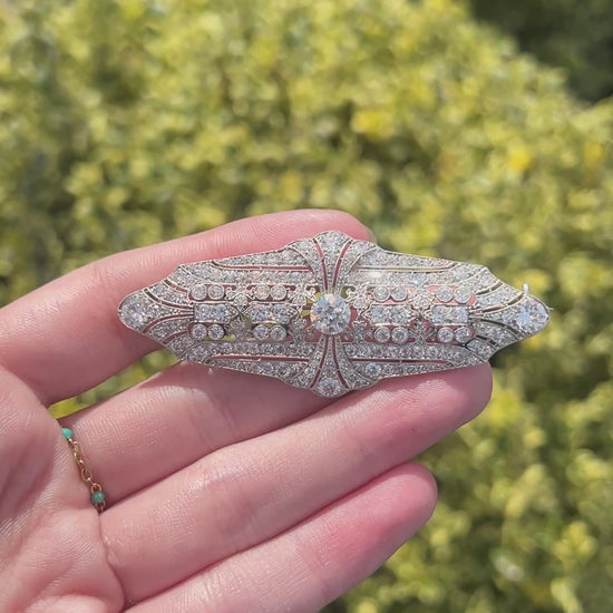 Estate Art Deco Platinum Ornate Old European Diamond Brooch - VHK#354a