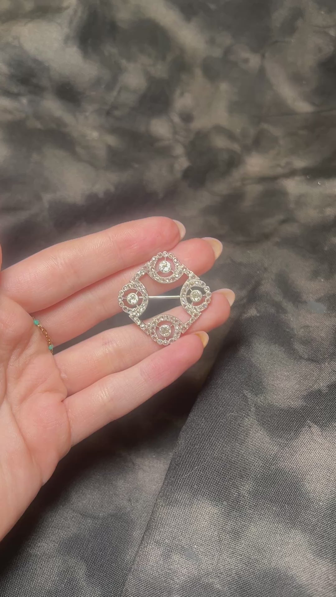 Estate Art Deco Platinum Rose Cut and Old Mine Diamond Brooch - VHK#725a