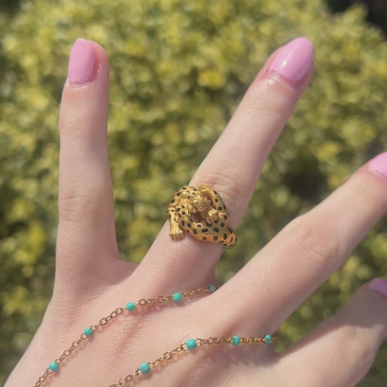 Estate Carrera Y Carrera Two Leopard 18K Yellow Gold Diamond Ring - VHK#943a