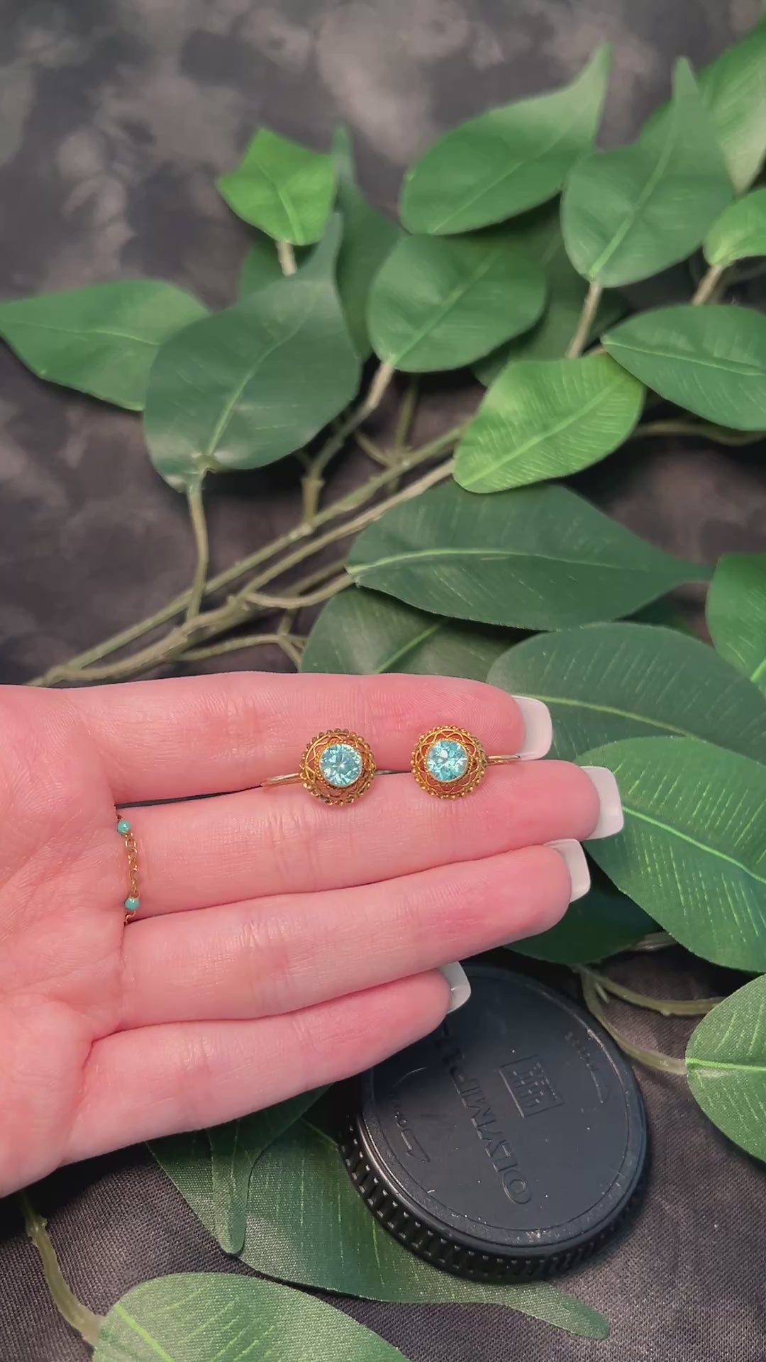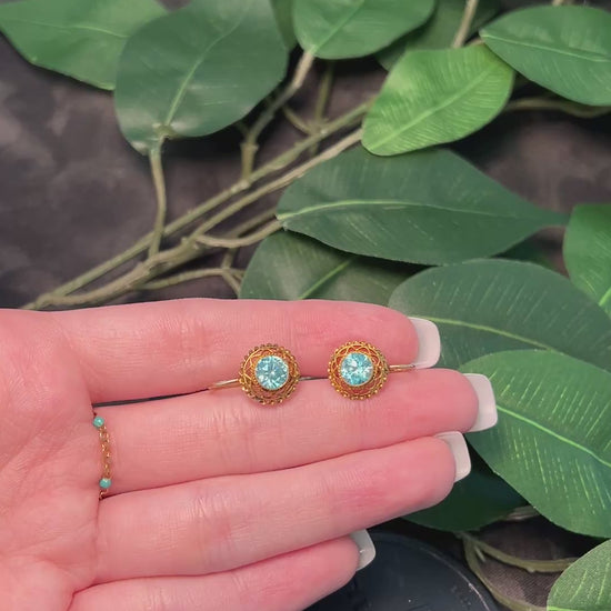 Estate Edwardian 14K Yellow Gold Blue Zircon Earrings - VHK#635a