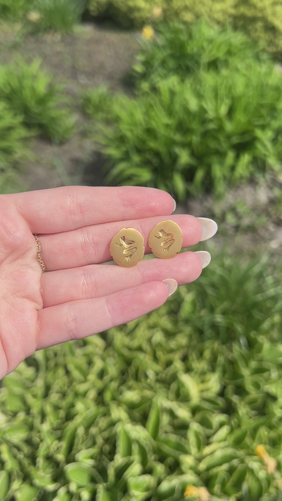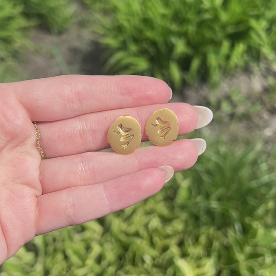 Estate Tiffany & Co. 18K Yellow Gold Frog on Lilly Pad Earrings - VHK#1001