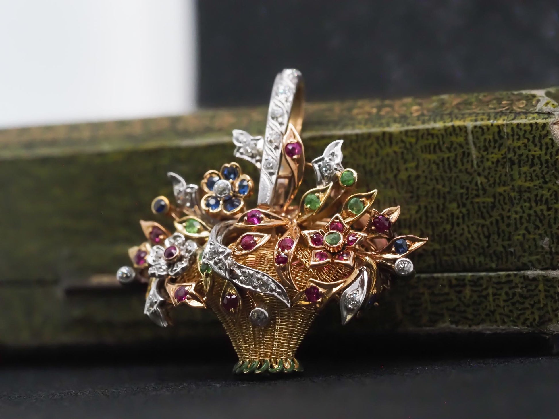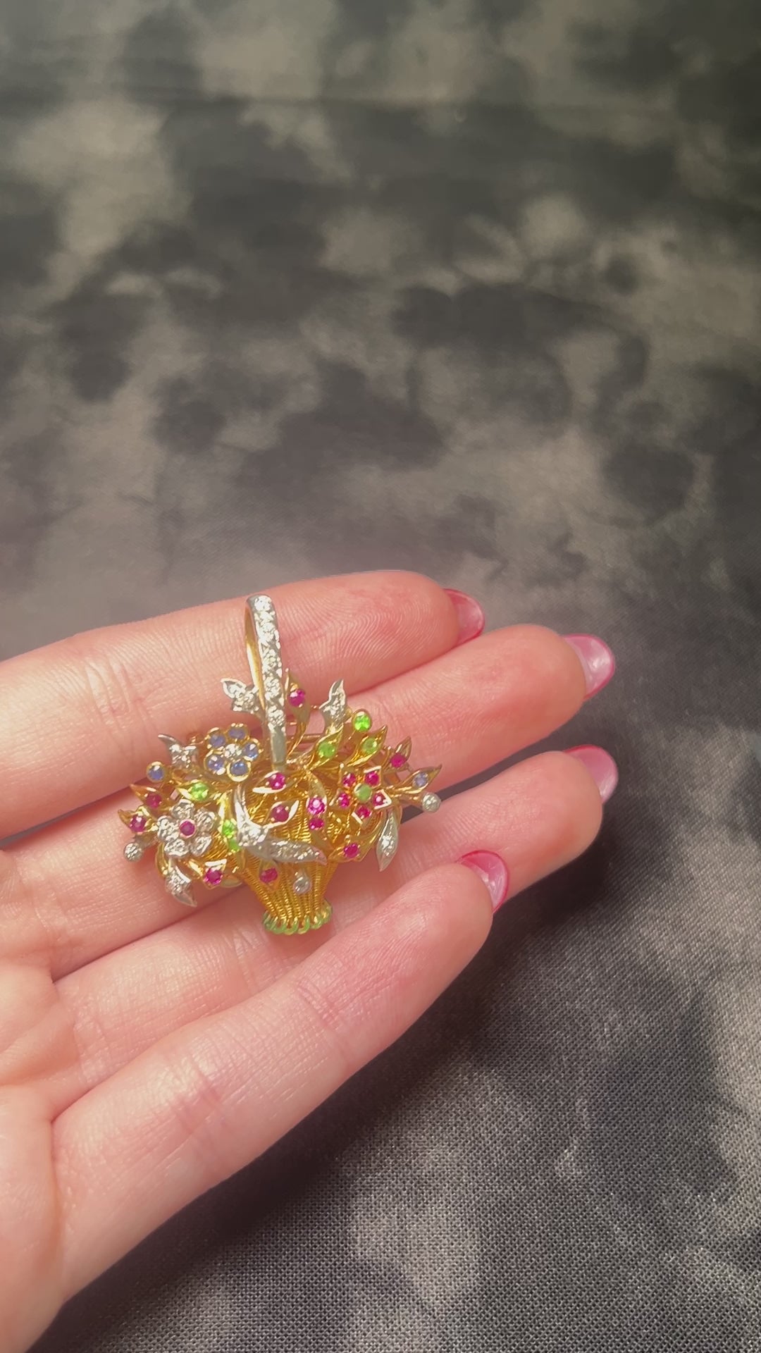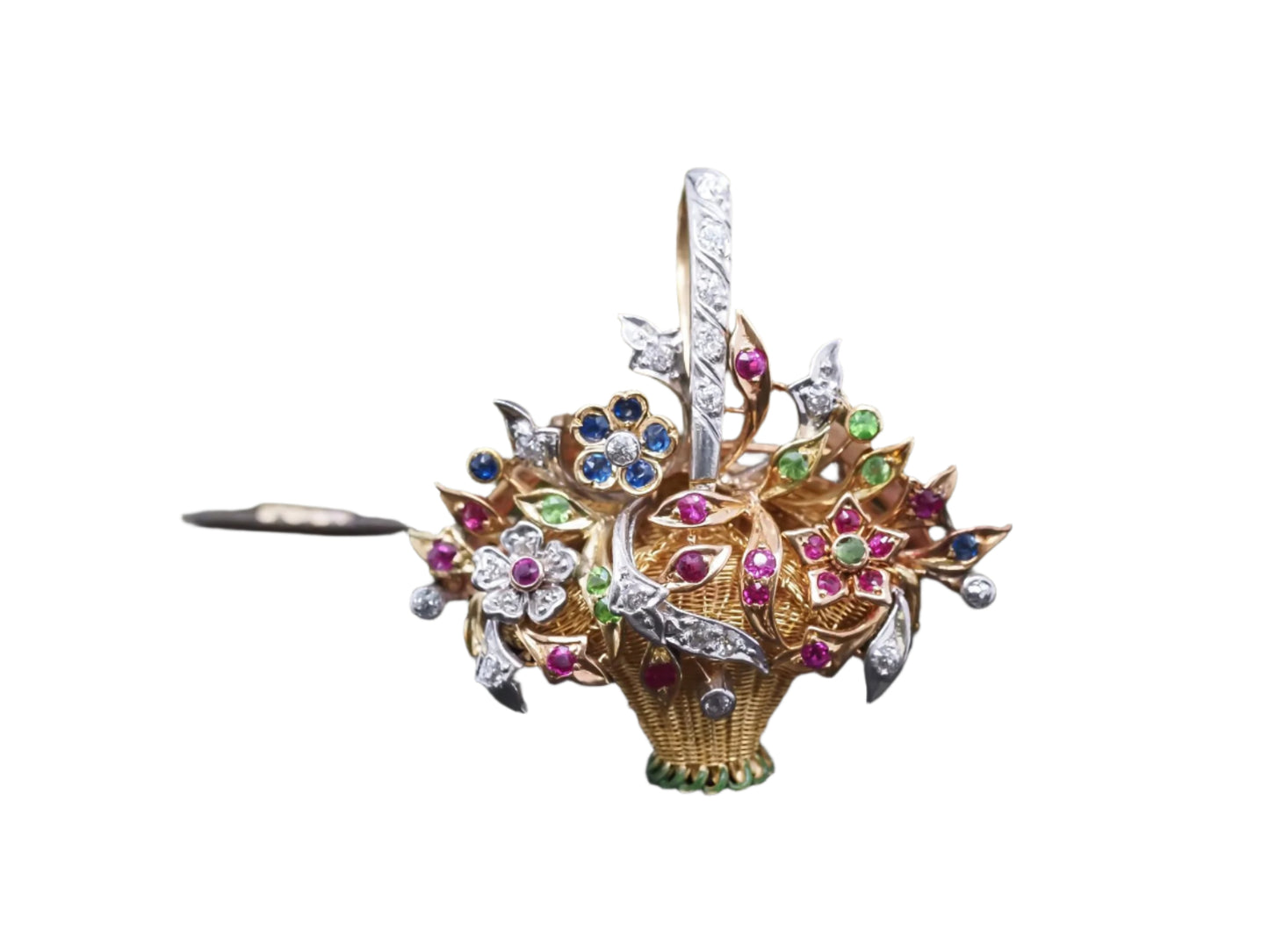 Estate Vintage 14K Yellow Gold Floral Basket Pendant and Brooch