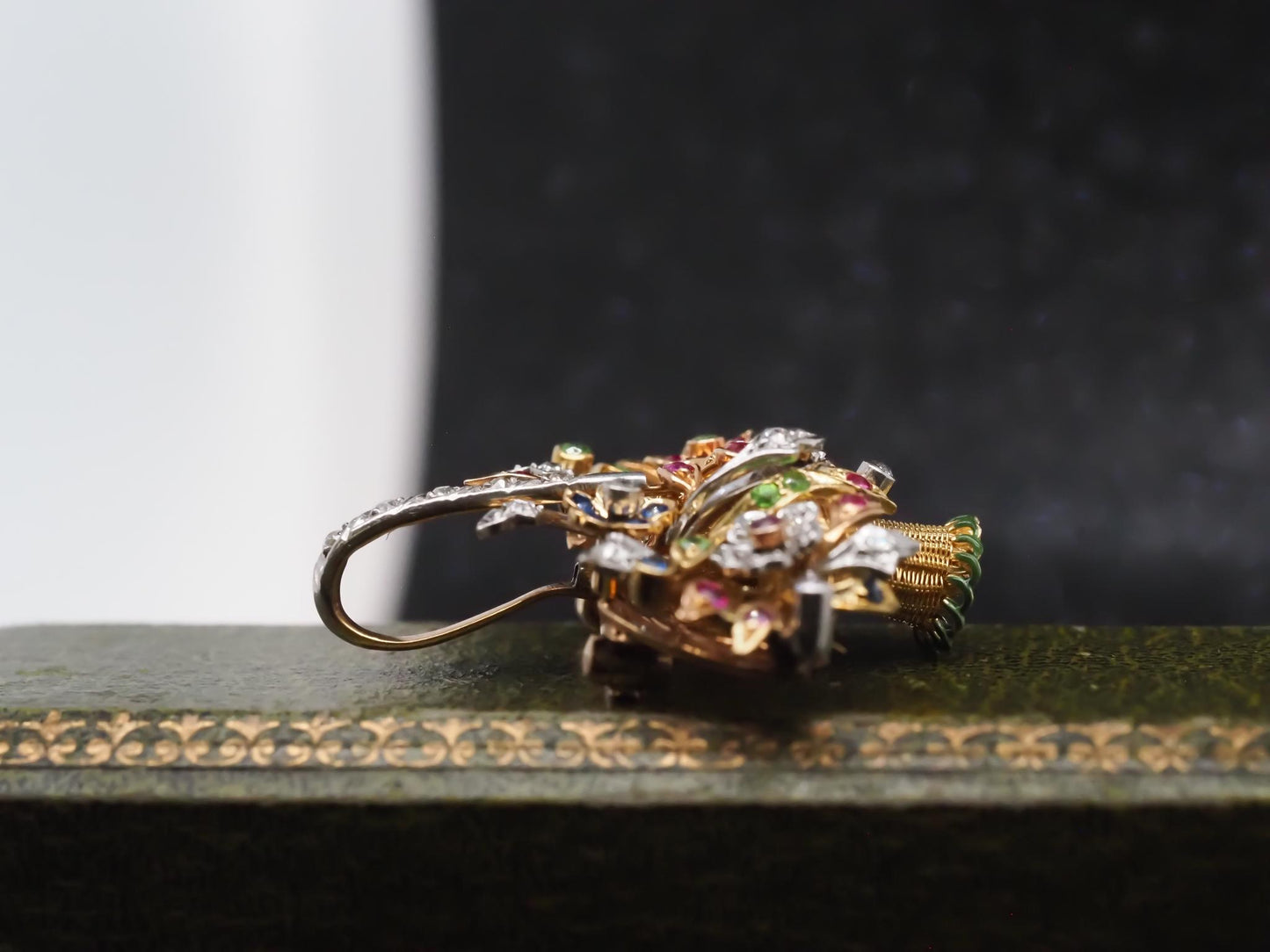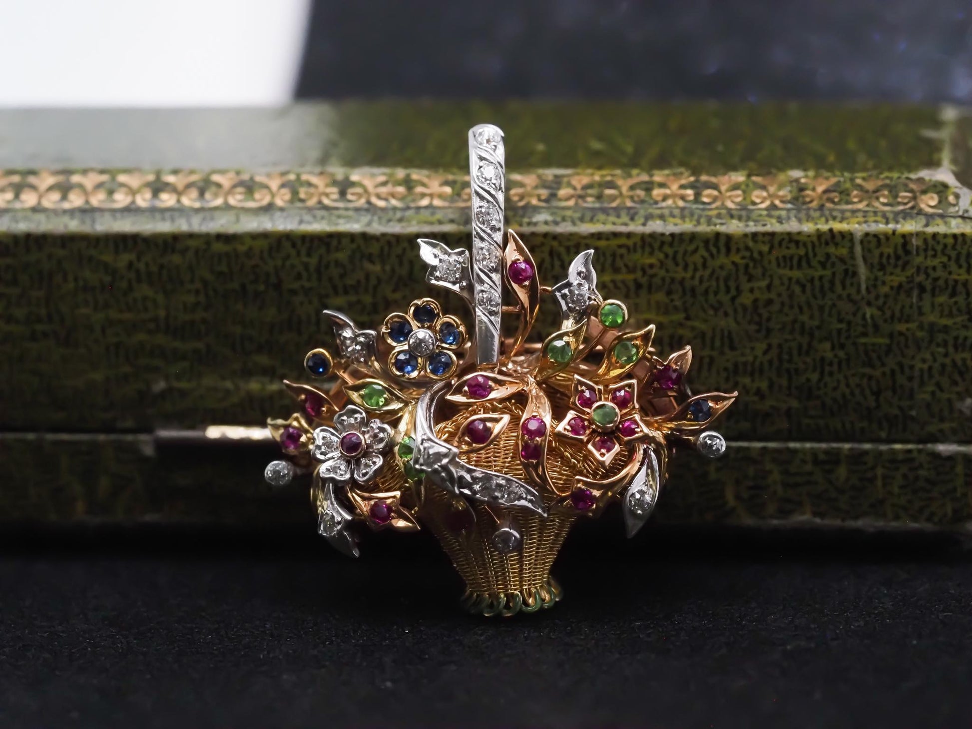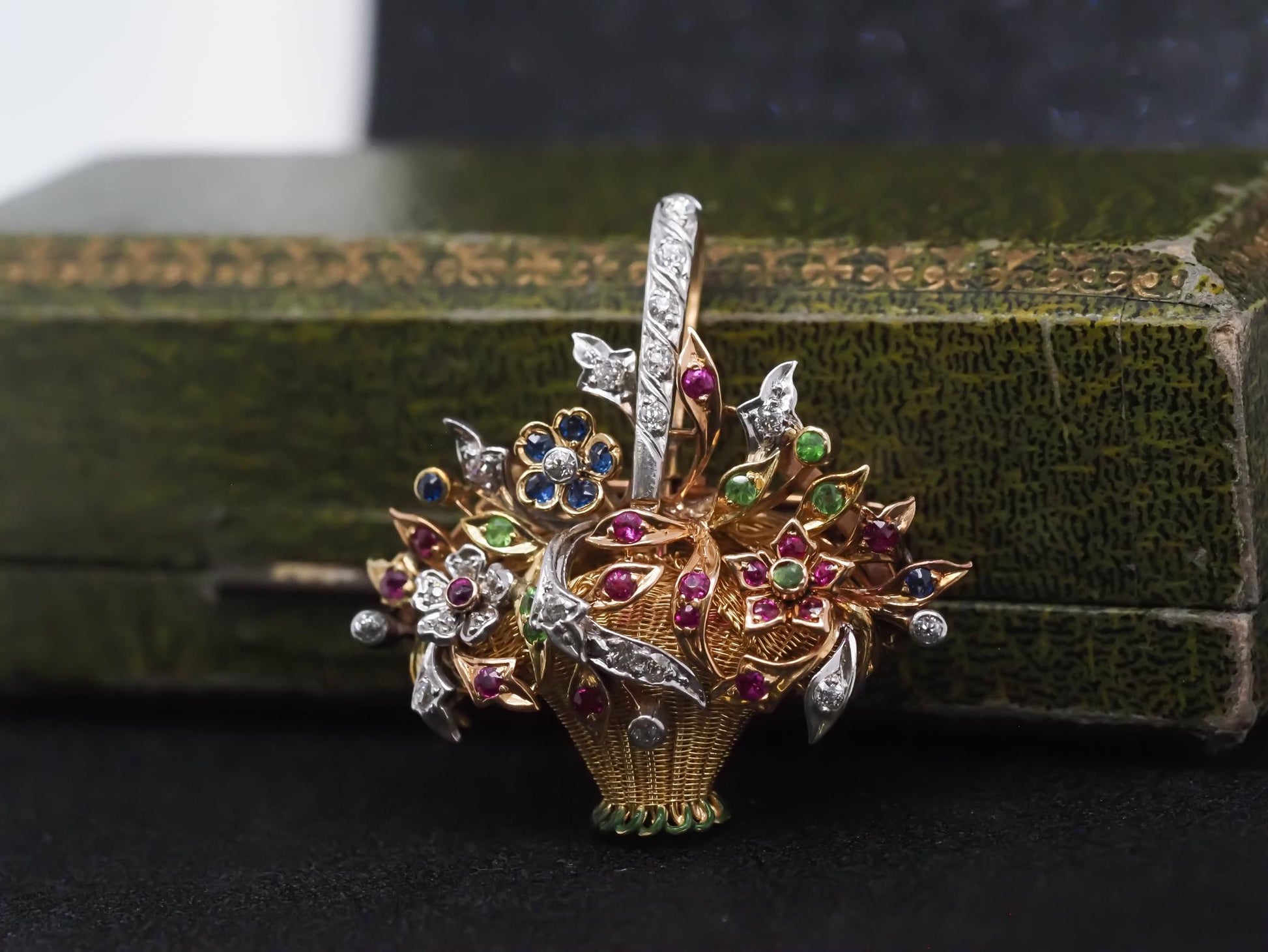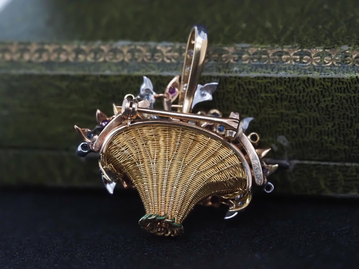 Estate Vintage 14K Yellow Gold Floral Basket Pendant and Brooch