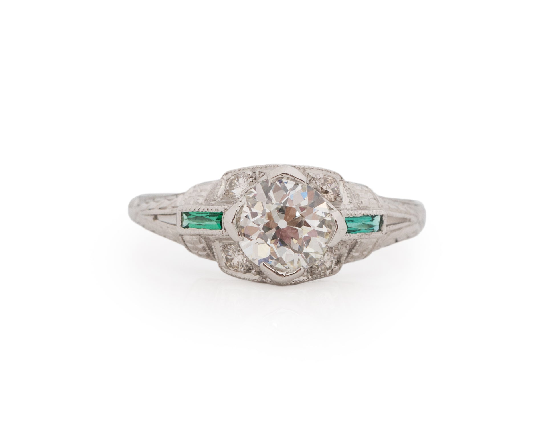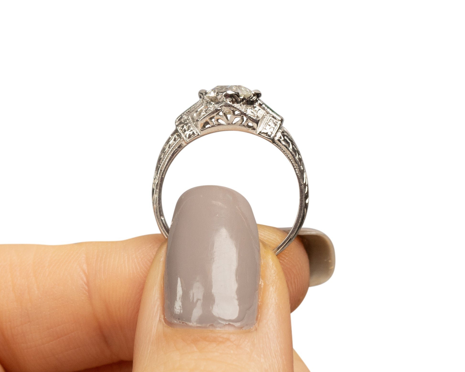 Circa 1920 Art Deco Platinum GIA Certified .72ct Old European Brilliant Diamond Engagement Ring - VEG#1913