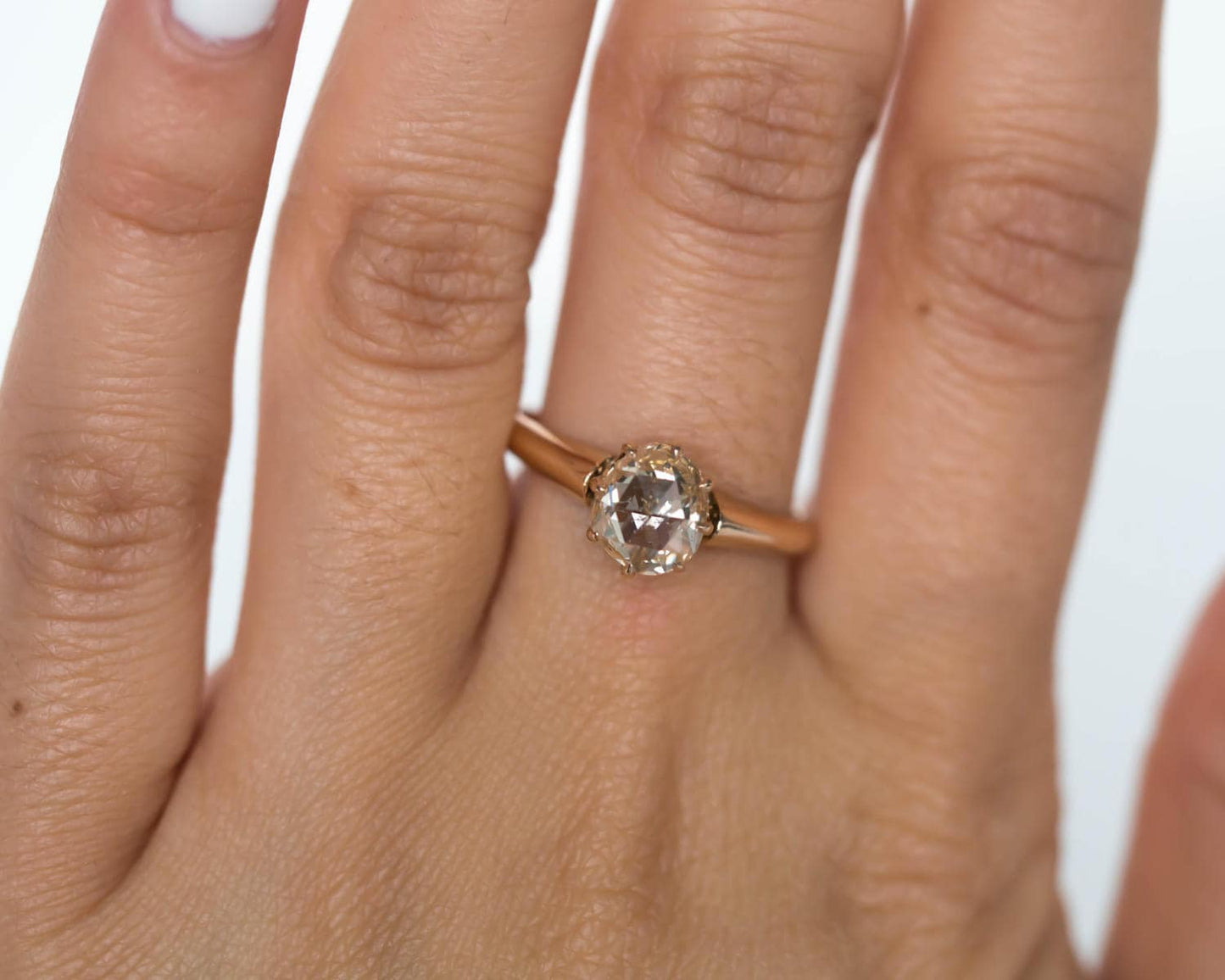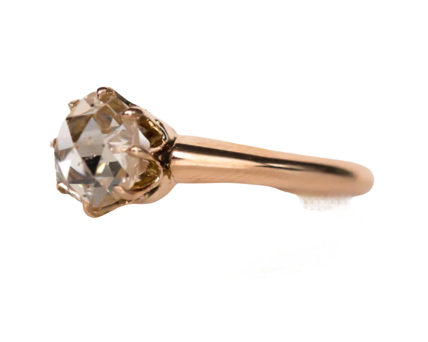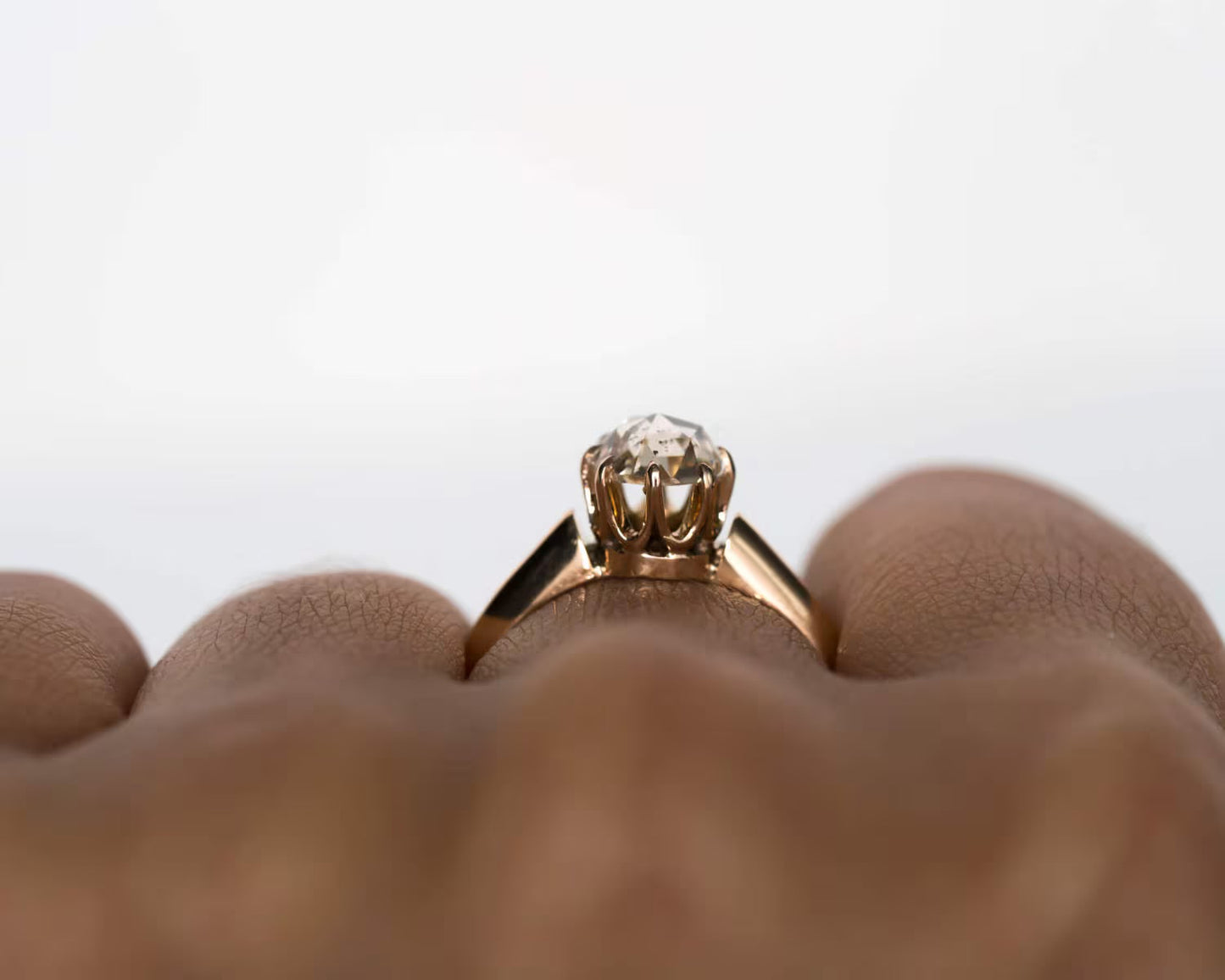 Circa 1880s Victorian 9K Yellow Gold .83ct Rose Cut Diamond Engagement Ring - VEG#760