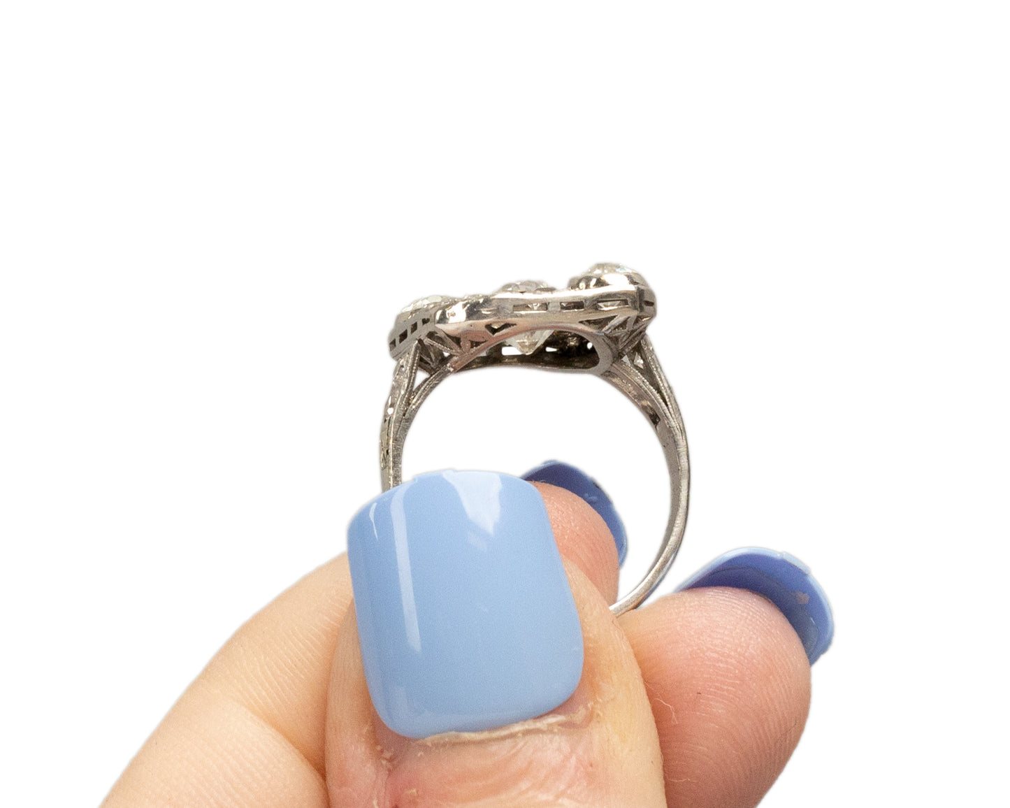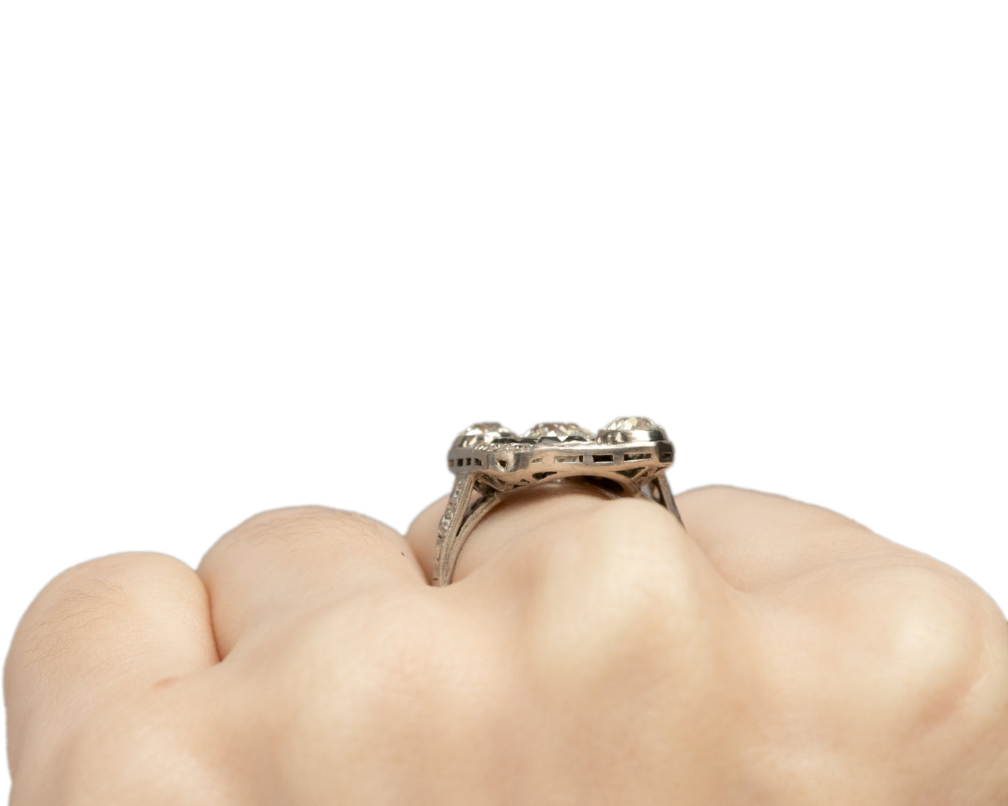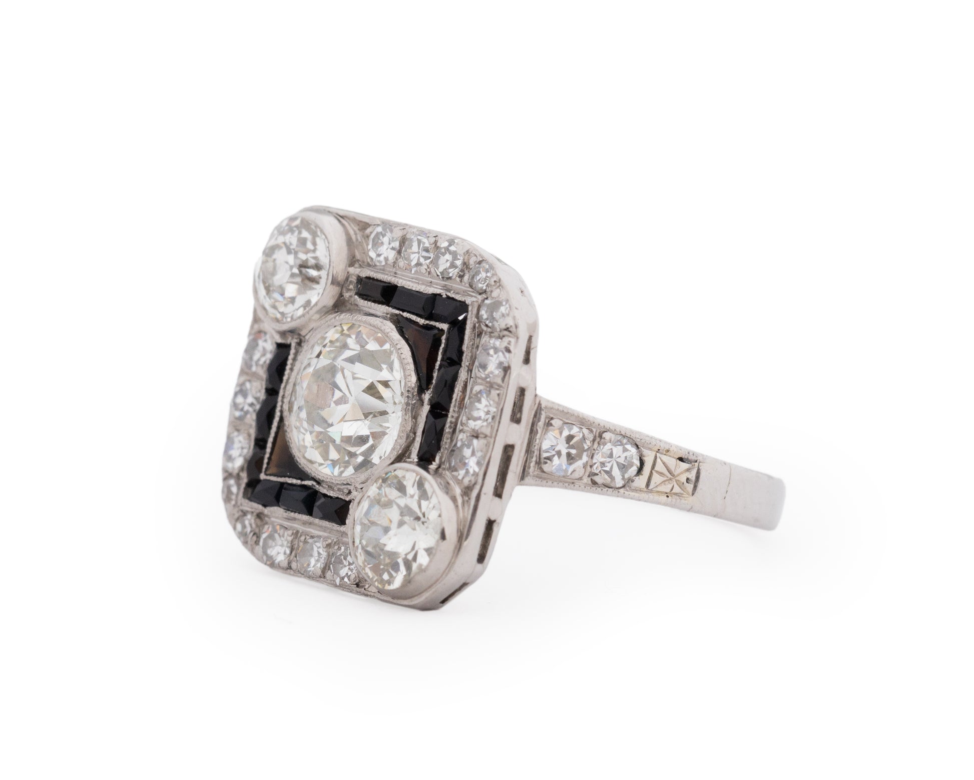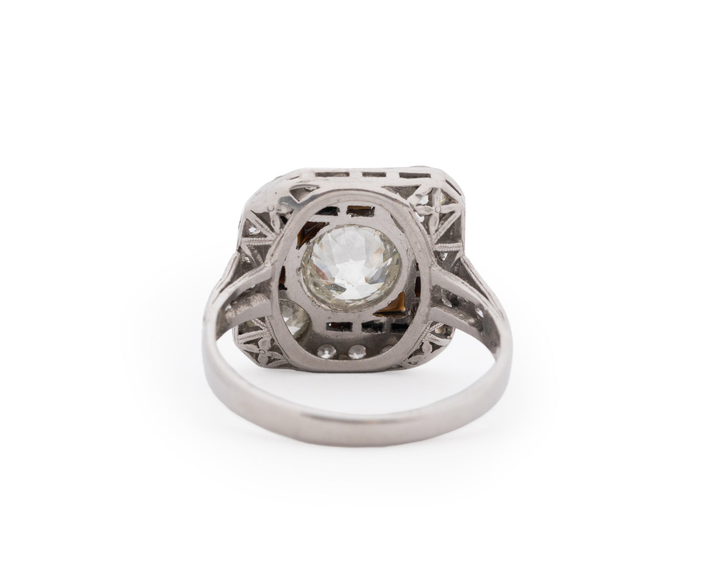 Side Diamond Details: Two .35ct each Old European Cut Diamonds and an additional .25ct of antique cut diamonds.
