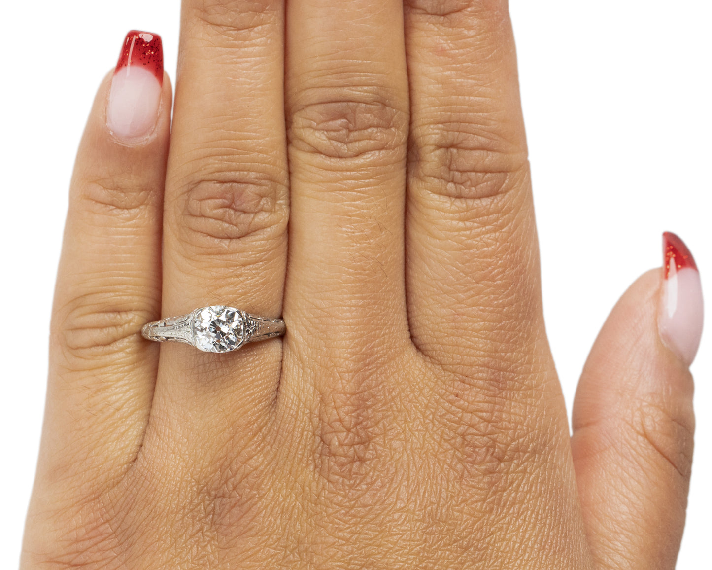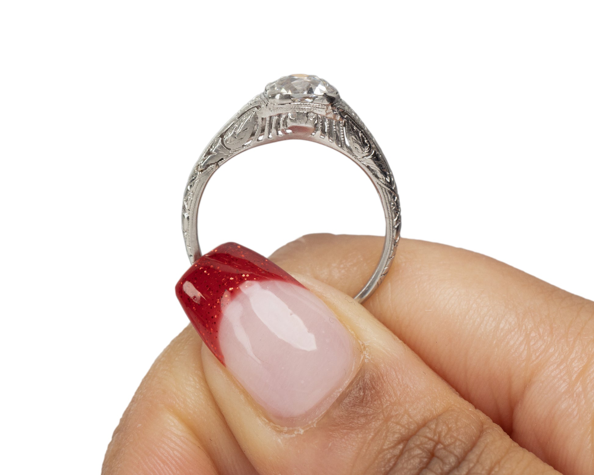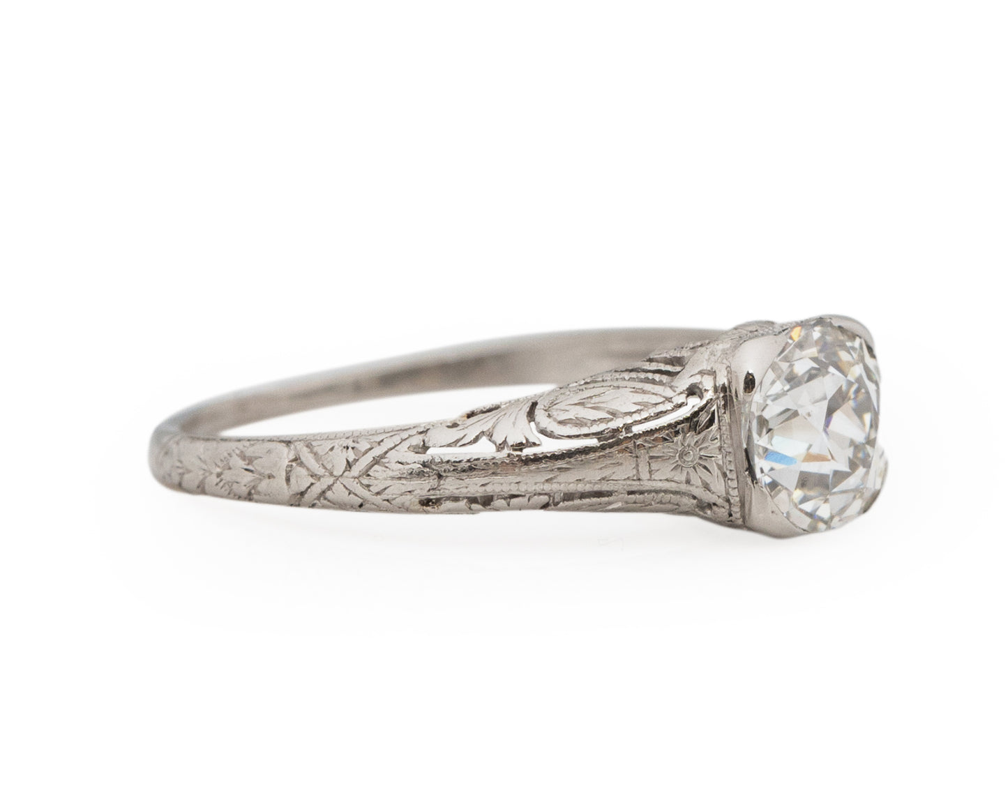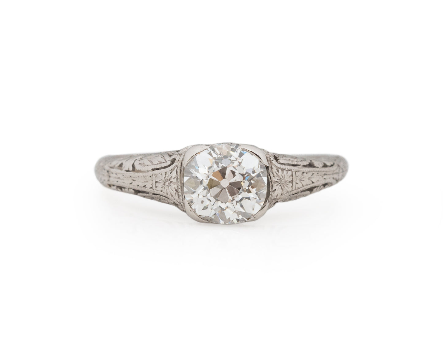 Circa 1920 Art Deco Platinum GIA Certified 1.17ct Old Mine Brilliant Diamond Engagement Ring - VEG#1864