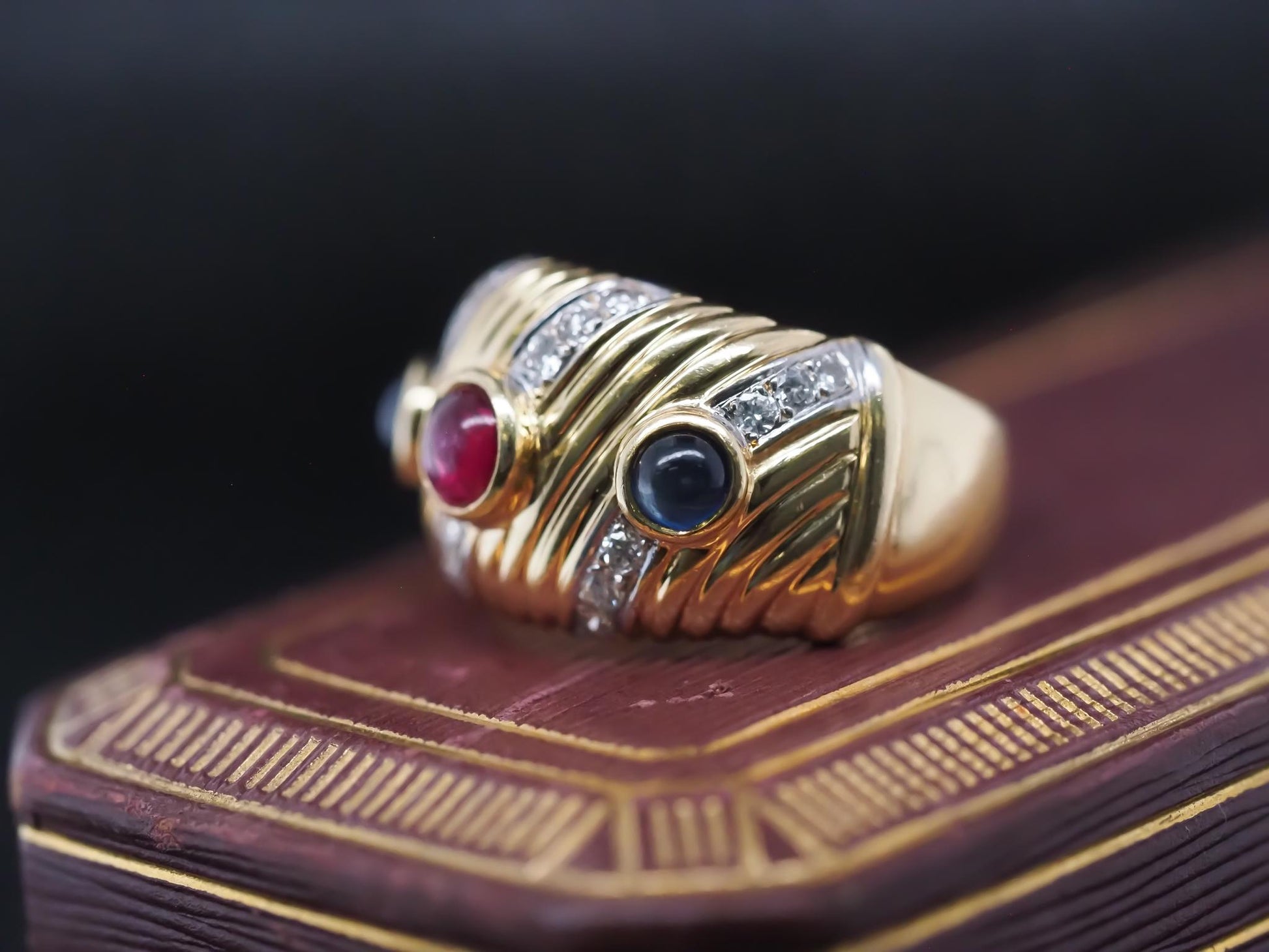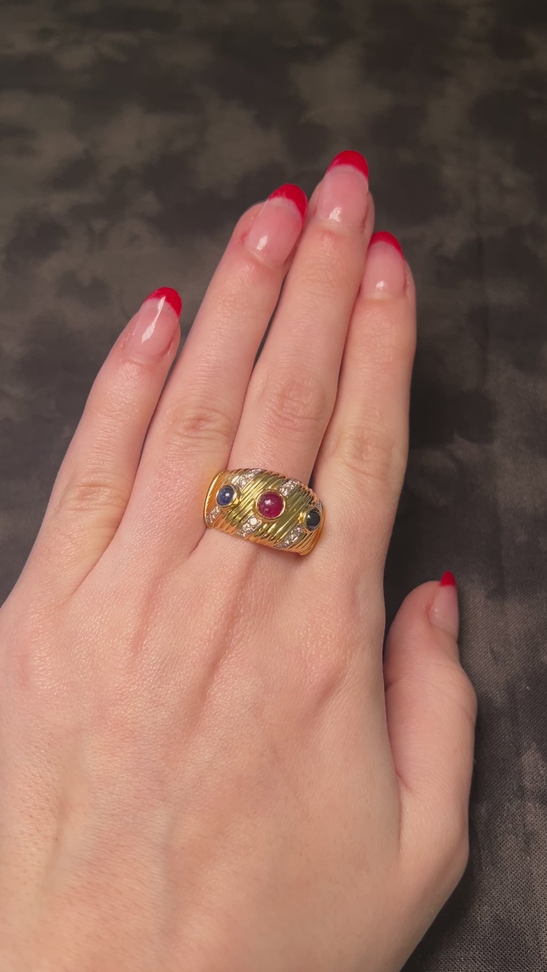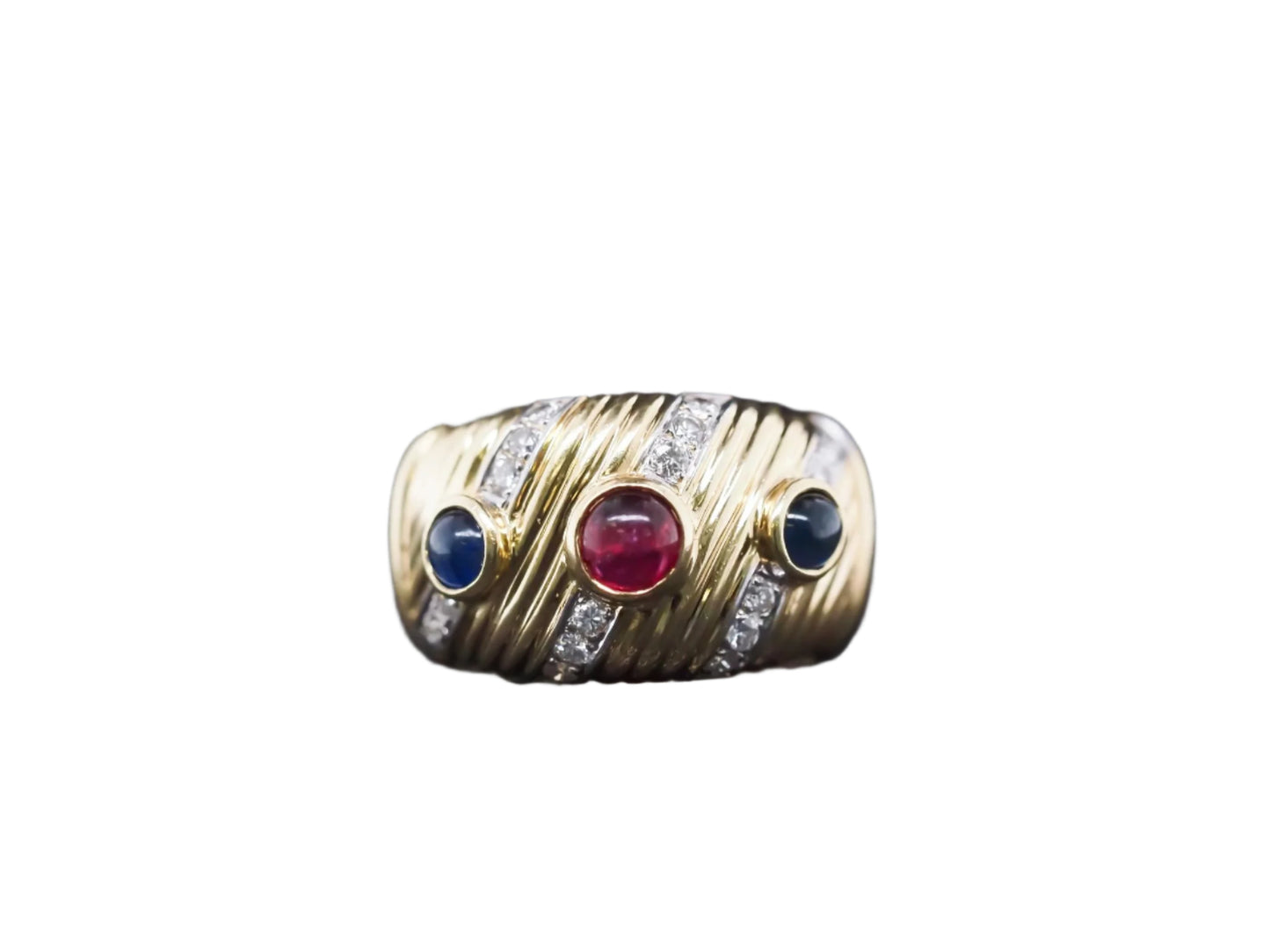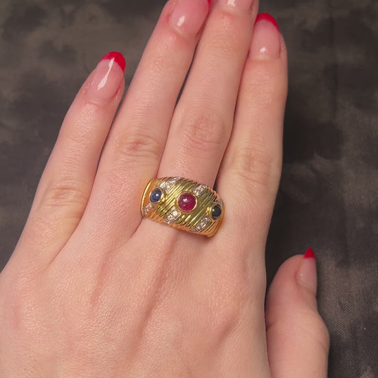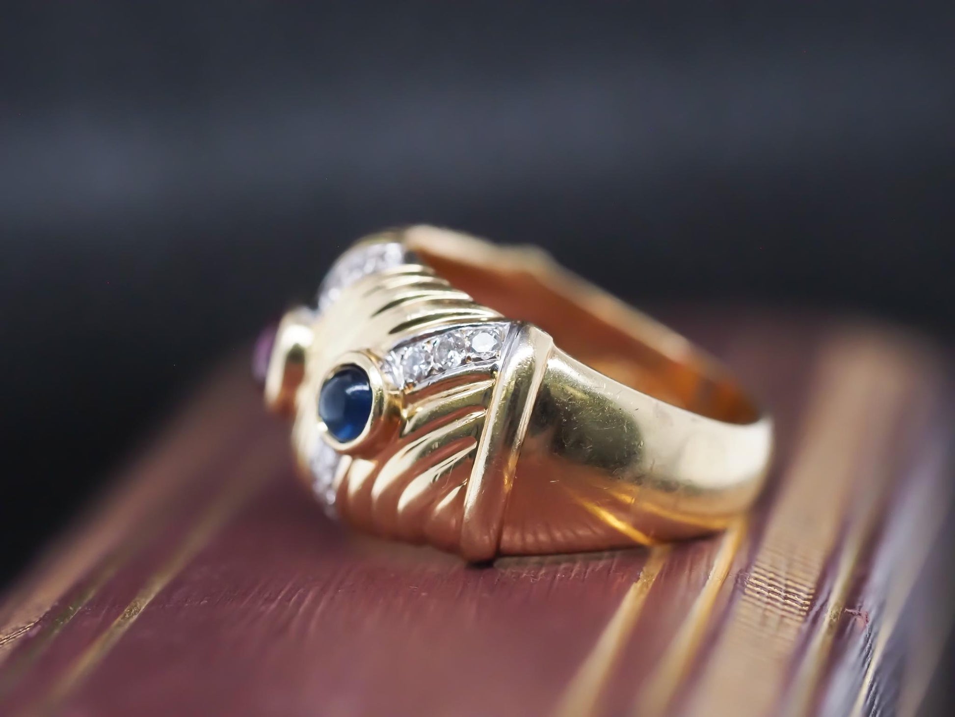 Vintage 18k Yellow Gold Ruby, Sapphire, and Diamond Ring