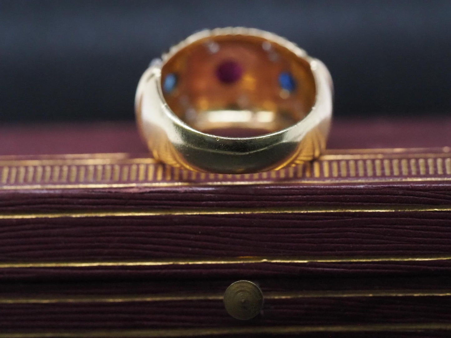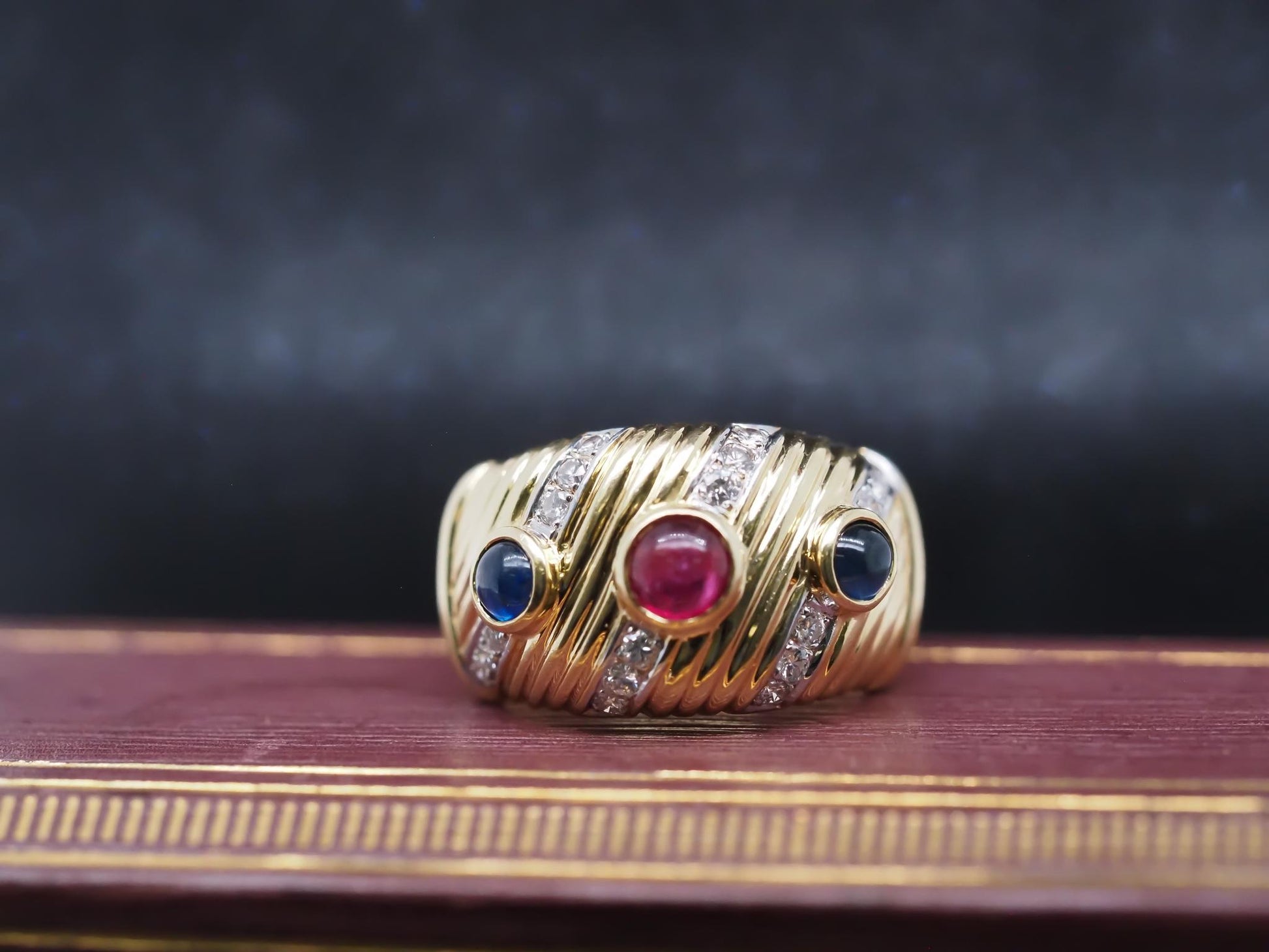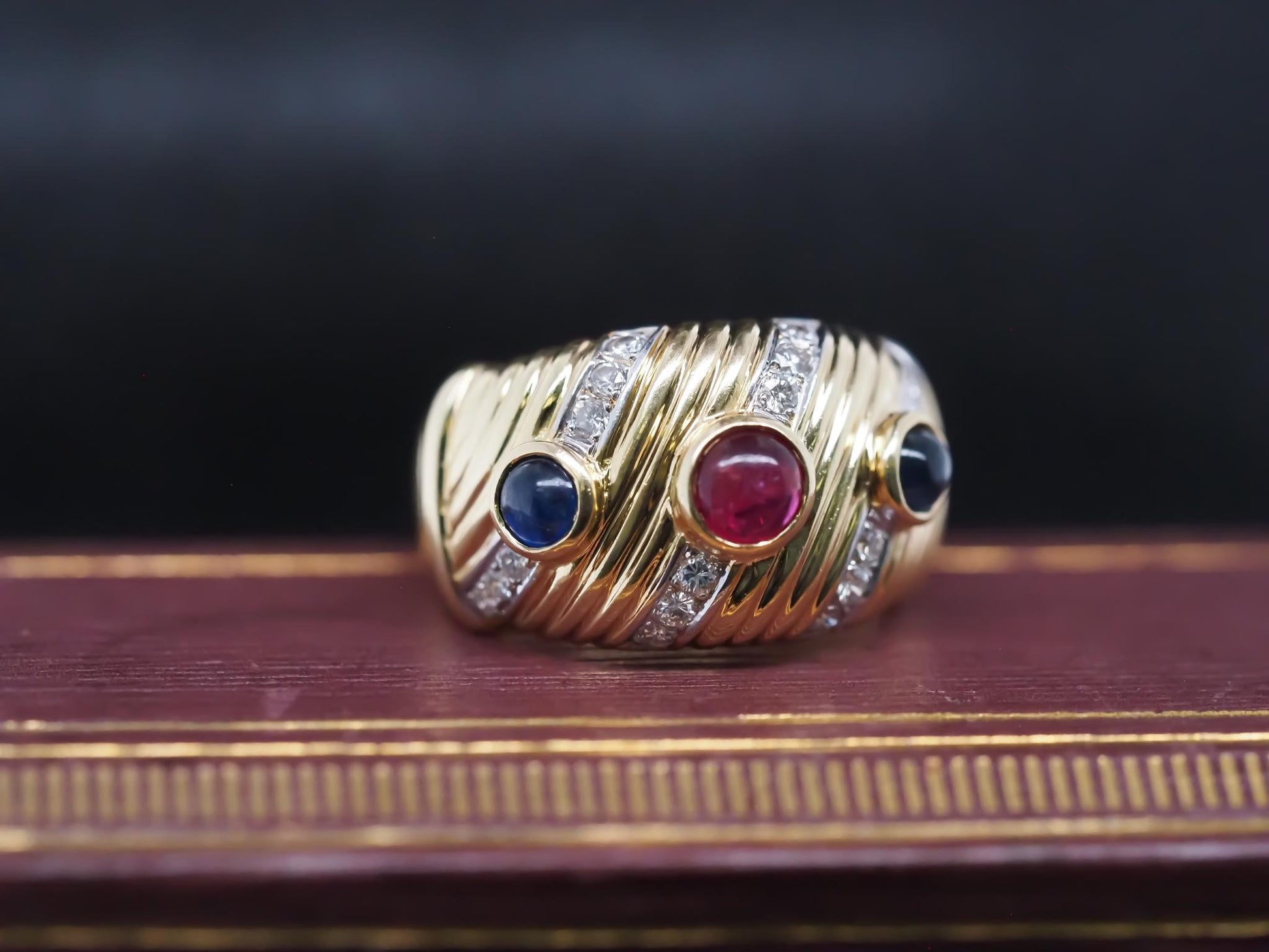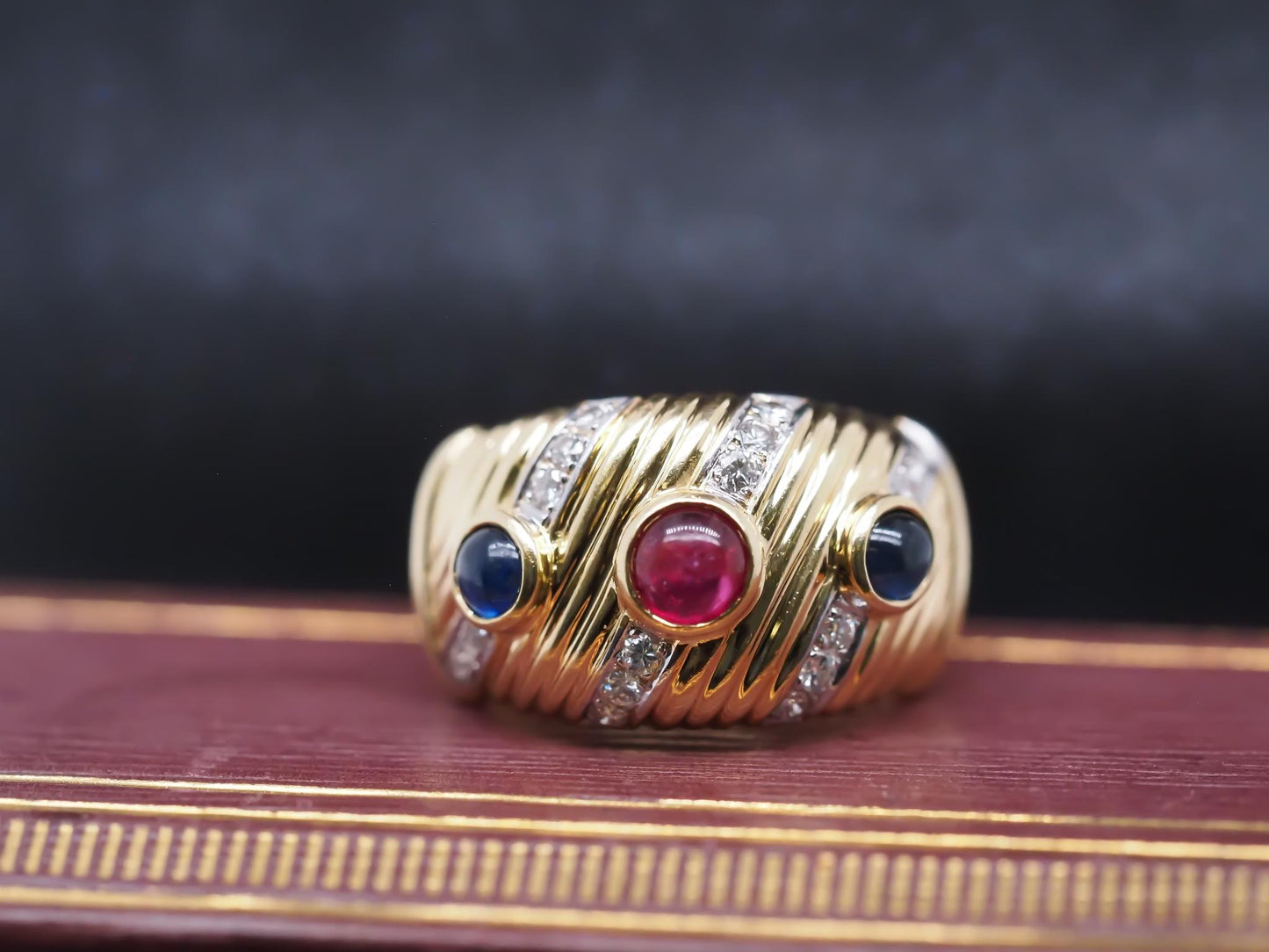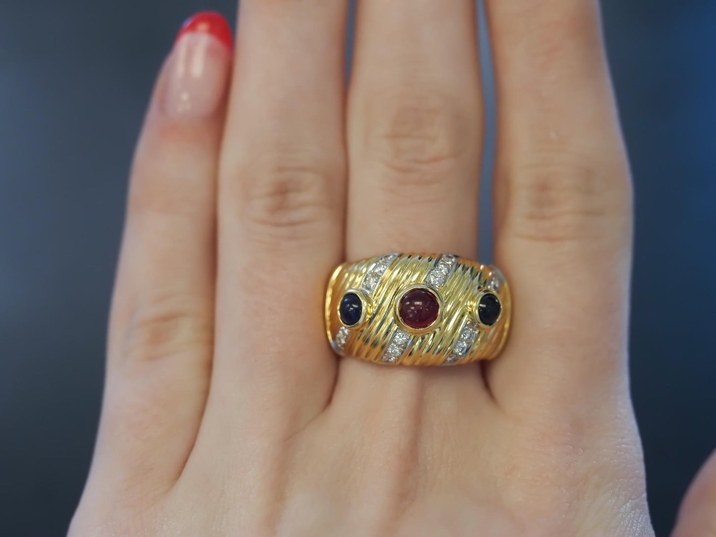 Vintage 18k Yellow Gold Ruby, Sapphire, and Diamond Ring