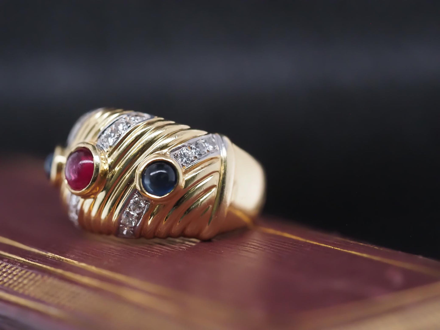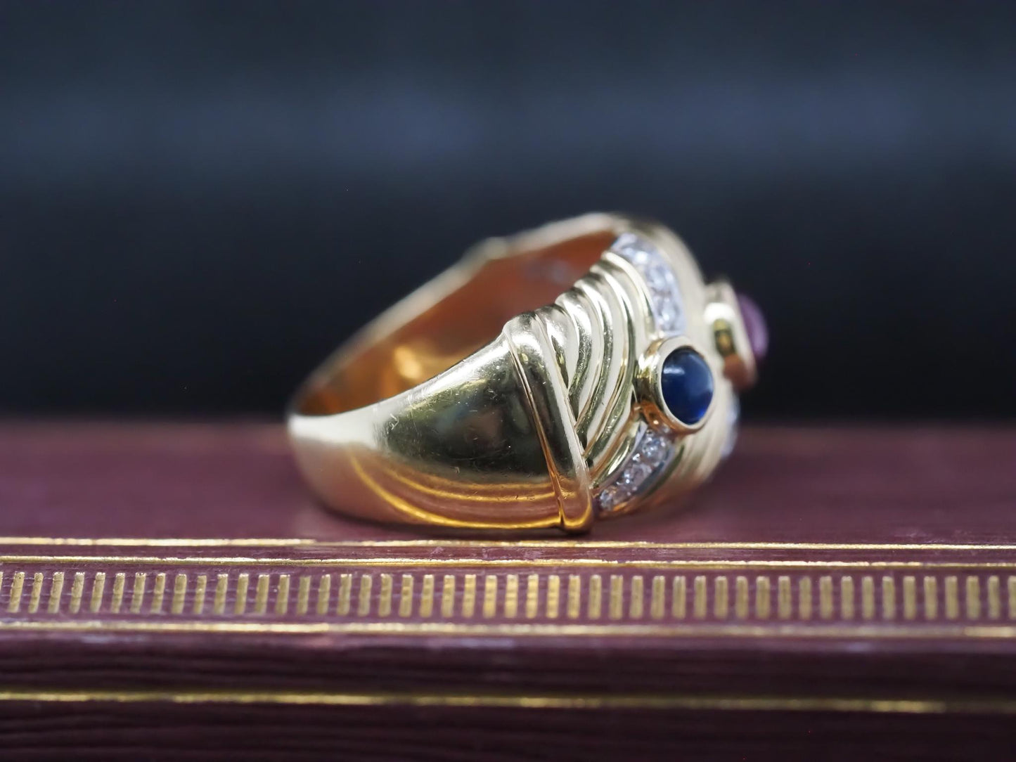 Vintage 18k Yellow Gold Ruby, Sapphire, and Diamond Ring - VHK#926