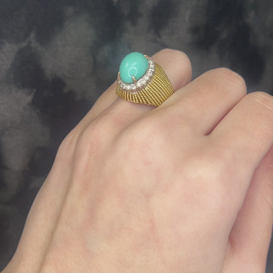 Vintage 18K Yellow Gold Turquoise and Diamond Ring