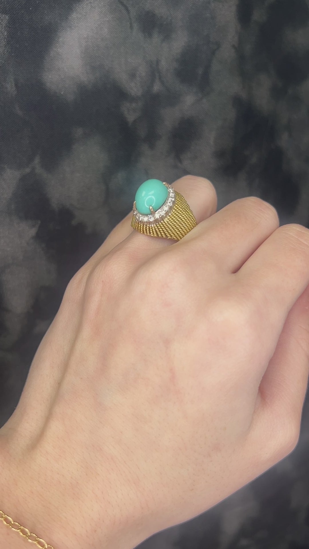 Vintage 18K Yellow Gold Turquoise and Diamond Ring - VHK#95a